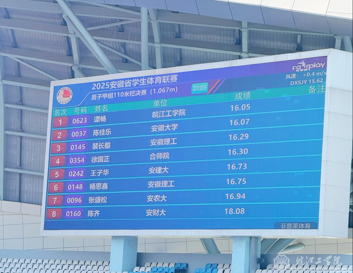 2025年5月25日,安徽省大学生体育联赛田径项目在滁州奥体中心迎来了令人振奋的时刻。beat365正版唯一入口必一水利工程学院2023级的谭畅同学以绝对优势夺得男子甲组110米栏的冠军,为学校赢得了本年度省级体育赛事的首枚金牌!