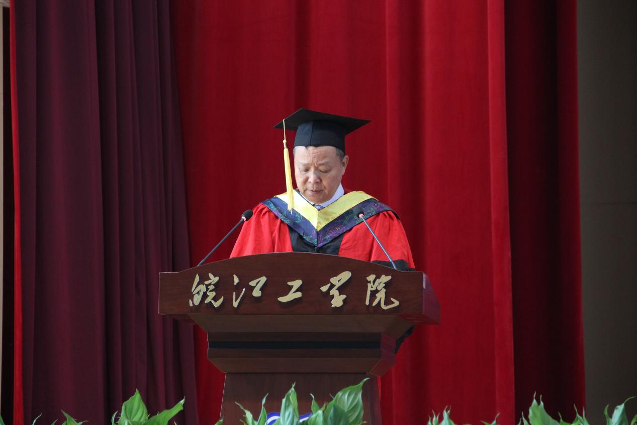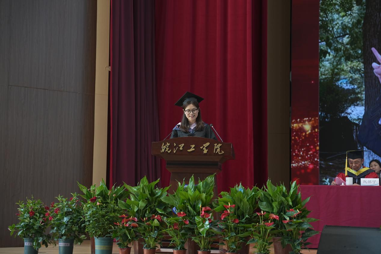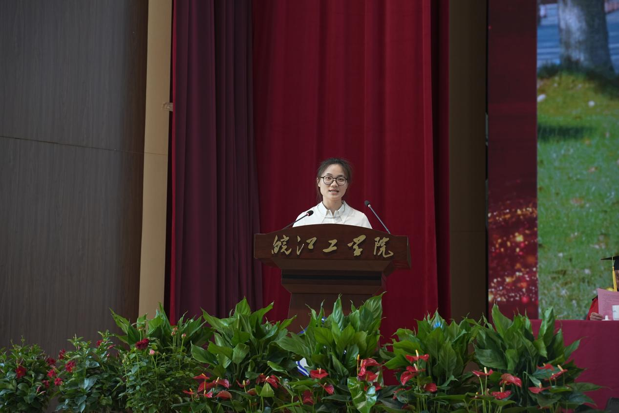 电信工程学院自动化教研室主任陈玲作为教师代表发言,她以师者的温情与期许,为毕业生送上临别赠言。“毕业是学习的新起点,愿你们保持好奇、坚守热爱,无论身处顺境逆境,都记得‘皖工’永远是你们的后盾。”陈玲老师的句句嘱托,如春风化雨,滋润着毕业生们的心田。