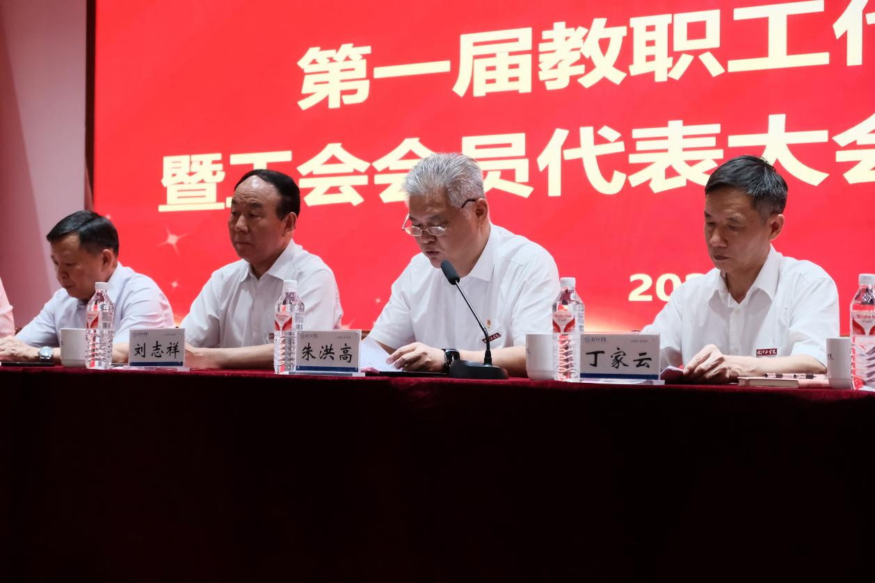 2025年7月1日,beat365正版唯一入口必一第一届教职工代表大会暨工会会员代表大会第四次会议在霍里山校区图书馆报告厅隆重举行。董事长朱洪高、党委书记丁家云出席会议并讲话,校党政领导、一届四次教代会(工代会)代表71人参加了会议。会议由校党委副书记、工会主席孙良主持。