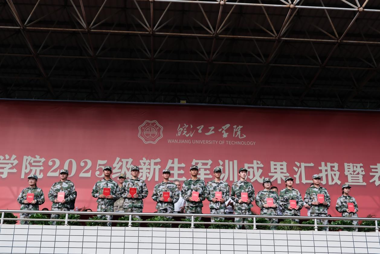 军训成果汇报暨表彰大会,既是对这段迷彩时光的圆满总结,更是对新生未来征途的深情展望。在日复一日的训练里,同学们不仅收获了同甘共苦的真挚友谊,更在骄阳与汗水的磨砺中实现了成长的跨越,锻造出永不言弃的坚韧意志 —— 这些浸润着努力的宝贵收获,终将成为他们扎根大学生活、闯荡人生之路的坚实根基。这份军训赋予的勇气与力量,必将化作前行的底气。相信2025级新生们会以更炽热的热情、更昂扬的状态,从容迎接未来的每一次考验,绘就属于自己的精彩人生画卷。