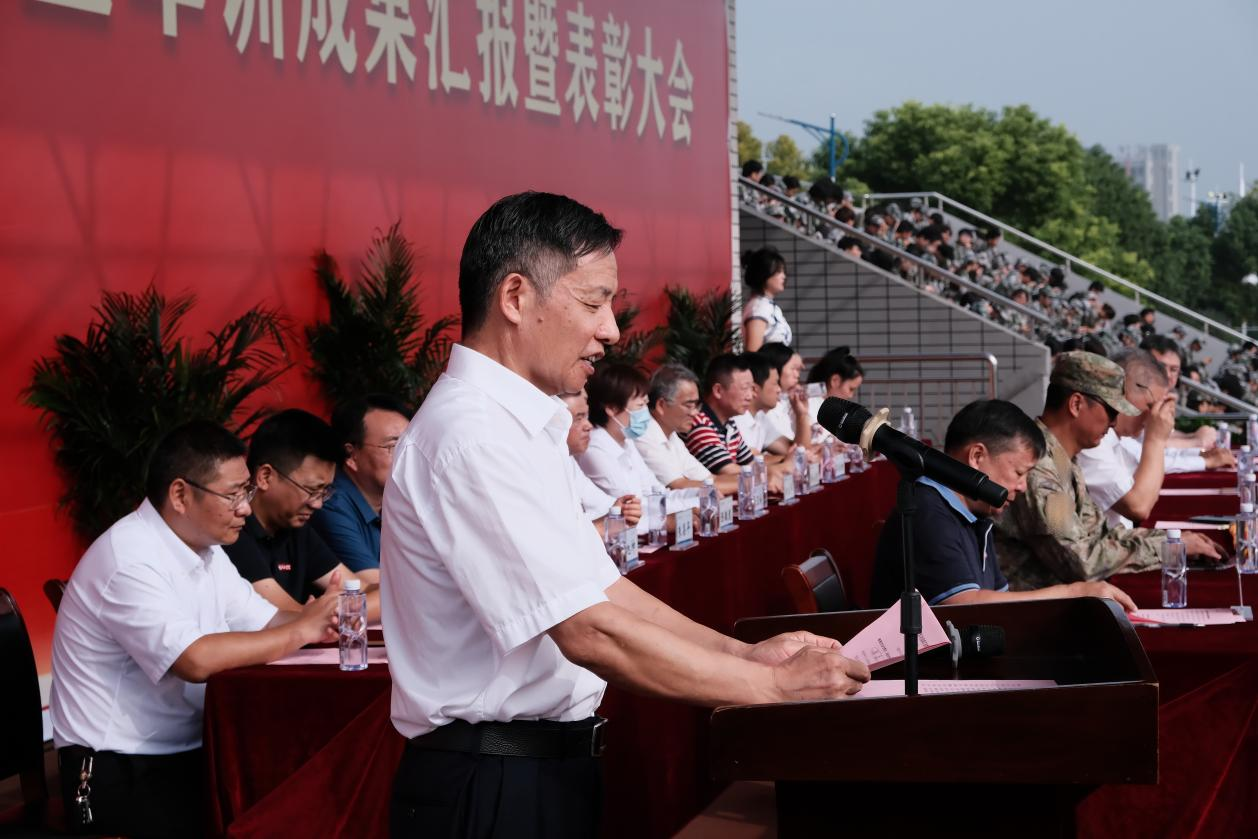 汇报表演结束后,王志宣读表彰决定,授予12名教官“优秀带训教官”称号,6名教师“军训先进工作者”称号,135名同学“军训积极分子”称号、135名同学“内务标兵”荣誉称号。校领导为获奖代表颁奖。孙良向承训部队赠送“铁血丹心施训育英才春风化雨润心传美德”锦旗致谢。