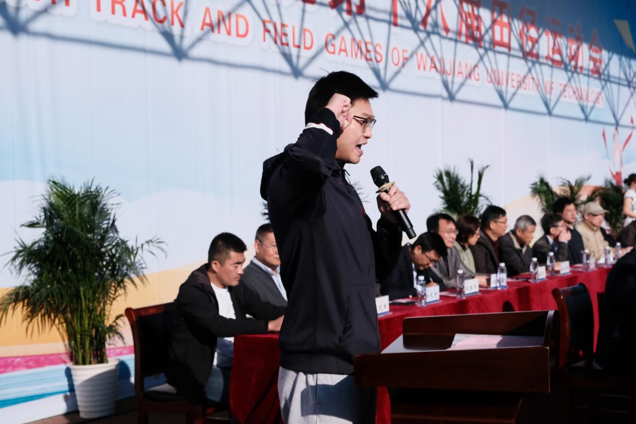 财经学院2025级财务管理专业学生张世奇代表全体运动员宣誓,承诺以饱满热情参赛,遵守规则、尊重对手与裁判,秉持“友谊第一,比赛第二”原则公平竞赛。