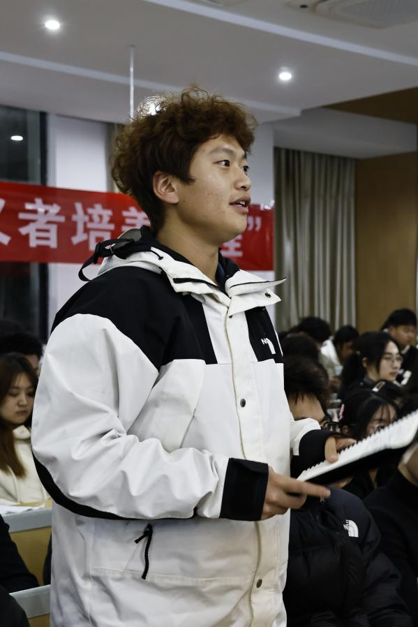 在互动交流环节,学员们围绕“如何面对挫折”“如何传承拼搏精神”等问题踊跃提问。白万浬先生结合自身感悟逐一耐心解答,引导学员们要专注专业深耕领域,以长期主义的坚持积淀成就事业高度;要正视人生中的每一次磨难,将挫折转化为成长的养分与前行的动力;要心怀热爱、勇担责任,在时代浪潮中书写青春华章。