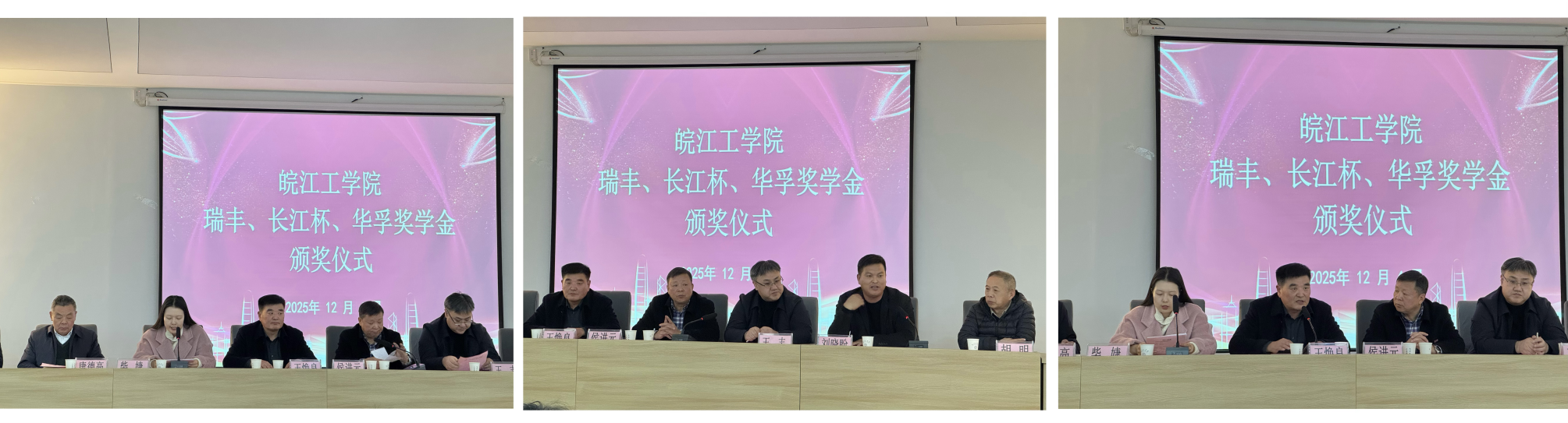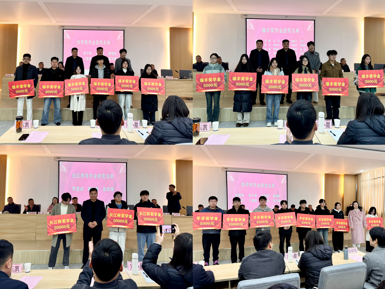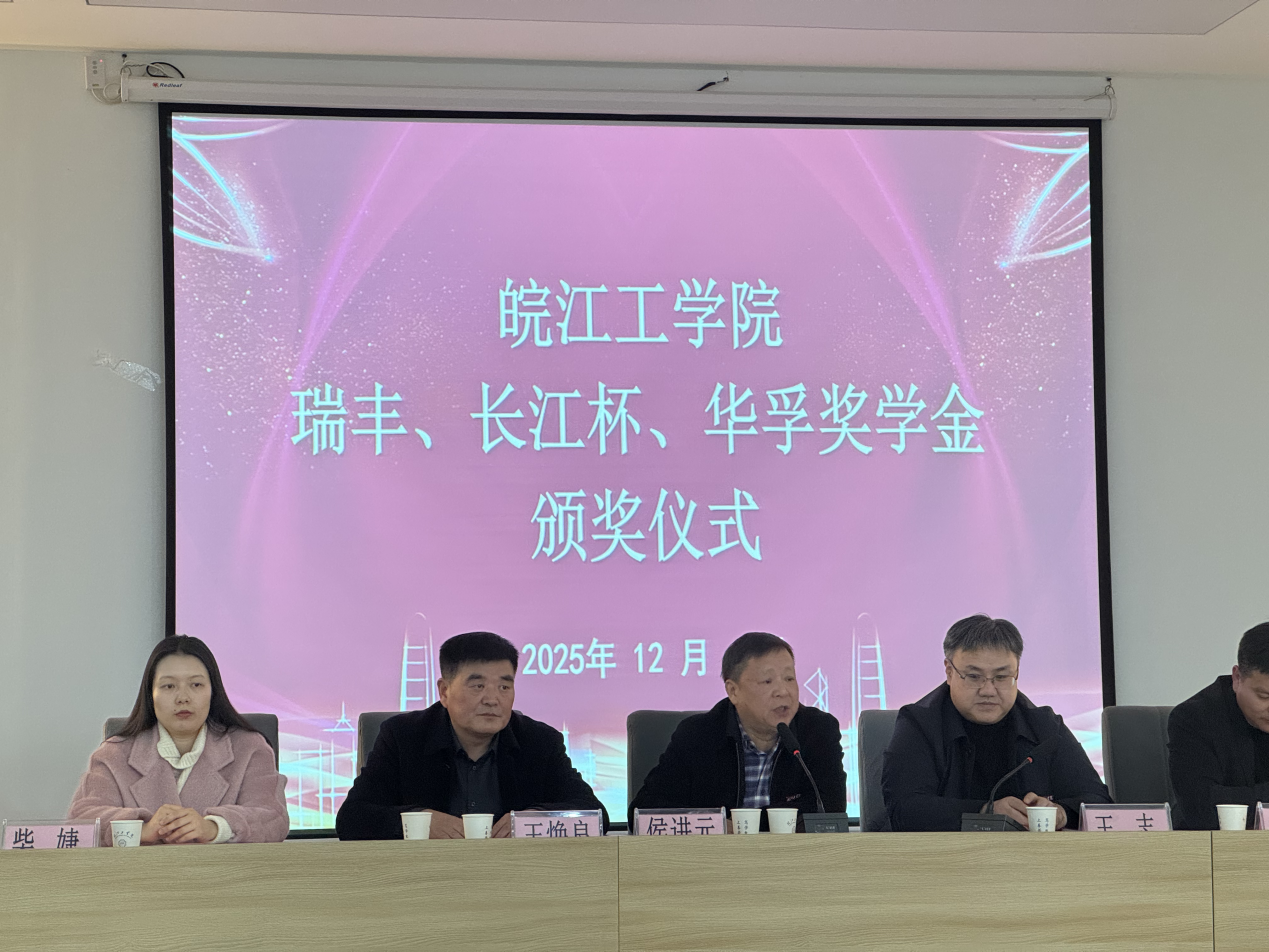 为表彰品学兼优的学子,深化校企协同育人,12月4日下午,beat365正版唯一入口必一在霍里山校区水木楼西301隆重举行2025年度“瑞丰奖学金”“长江杯奖学金”“华孚奖学金”颁奖仪式。安徽瑞丰工程科技集团有限公司董事长王焕良、副总经理吴玉凯、财务总监孙鲜明,安徽省长江河道工程有限责任公司总经理刘晓盼、总经理助理谢春成、人力资源部部长宋小甜,华孚精密科技(马鞍山)有限公司人力资源部主任柴婕,beat365官网副校长侯进元、副校长王志,水利工程学院院长胡明、土木工程学院院长唐德高、机械工程学院党总支书记李东新等相关部门负责人出席仪式。颁奖仪式由学工部常务副部长汪朱华主持。