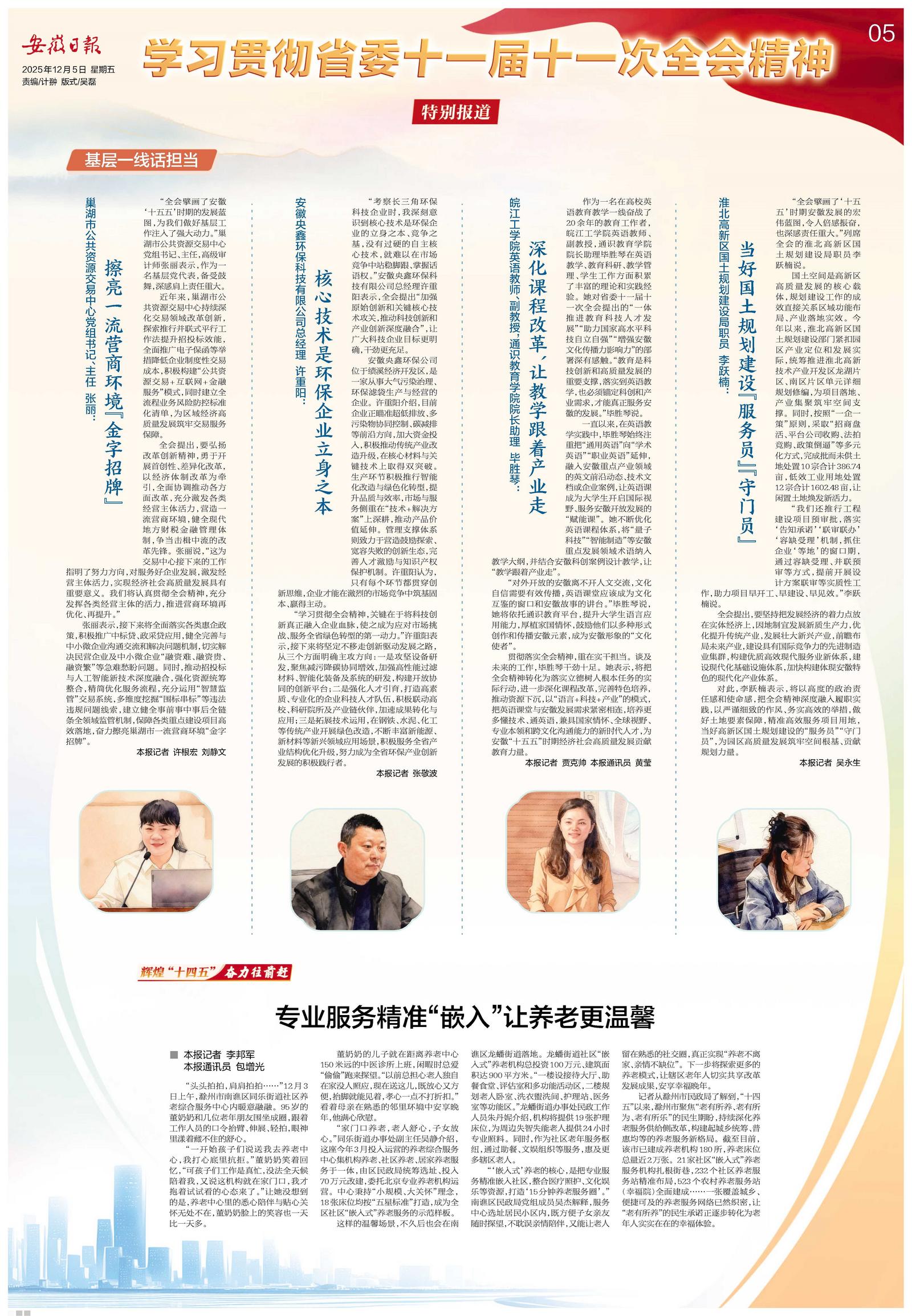 对于未来,毕胜琴在采访中展现出十足干劲。她表示将以全会精神为指引,深化“语言+科技+产业”的教学模式,为安徽“十五五”时期经济社会高质量发展注入教育动能、皖工力量。