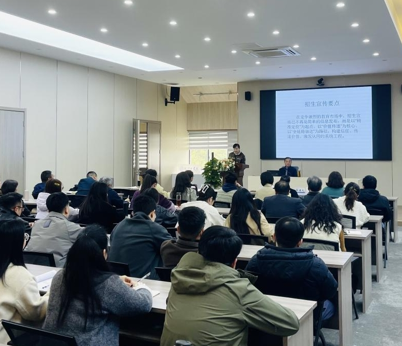 侯进元结合学校发展大局,对本次招生培训及后续招生工作作出动员部署。并强调,招生工作是学校发展的重中之重,直接关乎学校办学质量与长远发展,全体招生工作人员要增强责任意识,吃透各项招生政策与培训内容,立足岗位履职尽责,全力做好招生宣传各项工作。要始终坚持以考生和家长为中心,优化服务流程、提升服务质量,用心用情做好咨询解答、政策讲解等服务工作,以专业、严谨、热忱的态度展现学校良好形象。