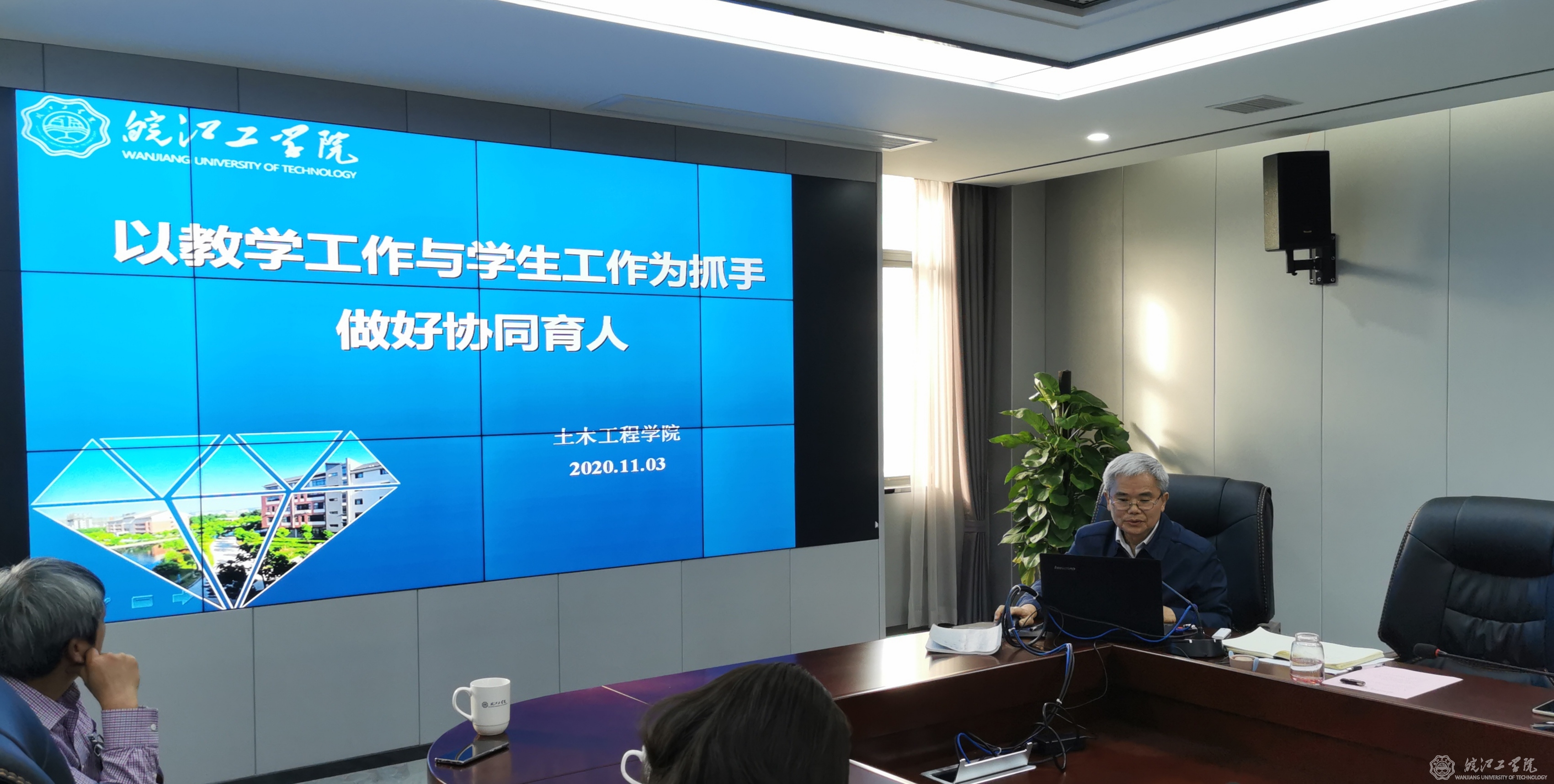 教务部部长胡明从如何加强教师教学行为规范化、教学管理规范化、如何将课程思政融入到课堂教学等方面进行了汇报;教务部副部长孙娴就近期教学工作开展情况进行了汇报;水利工程学院和土木工程学院分别就教学规范化管理和"教"与"学"促进学风建设两方面进行经验交流。