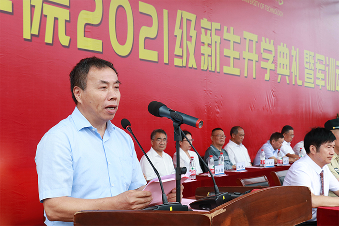 伴着嘹亮的国歌声,开学典礼正式拉开帷幕。吴继敏代表全校师生对2021级新生表示热烈欢迎,对辛勤培养的家长和老师致以崇高敬意,对来校指导军训工作的教官们表示衷心感谢。他向新生提出“如何在大学成就最好的自己?”,并要求全体新生学会立志,努力转变角色,尽快适应并融入大学生活,在新的起点上做好人生规划;学会做人,铭记“上善若水”的校训,时刻注意德行的培养和内在品格的塑造,在不断修德的过程中提升人生境界,实现人生价值;学会学习,掌握宽广扎实的科学理论和系统深入的专业知识;知行合一,有为梦想而坚持不懈的决心和毅力,脚踏实地、全力以赴。