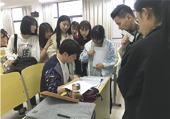 许戎带领支部创立了“领学示范”党史课堂,即由支部书记领学上党课,制作学习样板,再由各党小组讨论学习,将学习任务分解、讨论后,分组分批次由每位党员上台分享学习成果,最后通过互动交流学习成果。在“领学示范”课堂上,每位党员学生都是学习的播报人、承担者,支部书记动态调整学习状态和内容,让全体学生真学、真听、真感受。