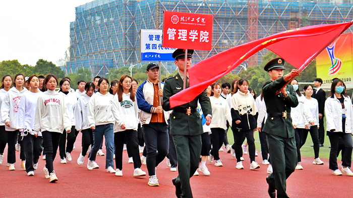 在激昂的运动员进行曲中,运动会正式拉开帷幕。各二级学院学生代表队排列成整齐的方阵,迈着矫健的步伐相继入场。土木工程学院方阵手持泡沫砖,艺术设计学院方阵手持调色盘,财经学院方阵手持小国旗……他们别出心裁、极具特色,充分展现了大学生蓬勃向上的青春活力。