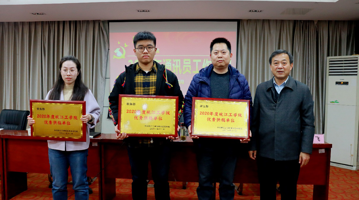 会上,王玉珏宣读了《关于表彰2020年度优秀供稿单位、优秀通讯员、优秀新媒体指导教师的决定》,孙良、伍旭坤为受表彰的部门和人员颁奖。