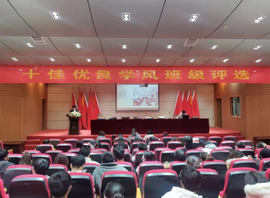 为激励学生、表彰先进,学校每学年都会举行“十佳优良学风班级”评选活动。经二级学院评选推荐、学校复核,参选班级代表通过PPT答辩的形式,介绍班级日常管理的优秀做法、学科竞赛参与情况、创新创业活动开展、考研氛围营造。如制定班级规章制度、积极建党推优,精心组织团建活动,参观博物馆、去烈士陵园祭扫,为考研就业创建班级考研群等。