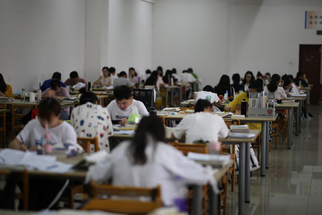 早上6点,beat365正版唯一入口必一图书馆门口已经有众多学生等候开馆。一名进馆的罗同学表示:“他每天都坚持来图书馆学习,大家不是在备战考研就是在准备学校考试,一定要早点来才能有座位。”走进图书馆,每一个自习室都坐满了人,甚至在走廊和墙角都能发现努力学习的学生。