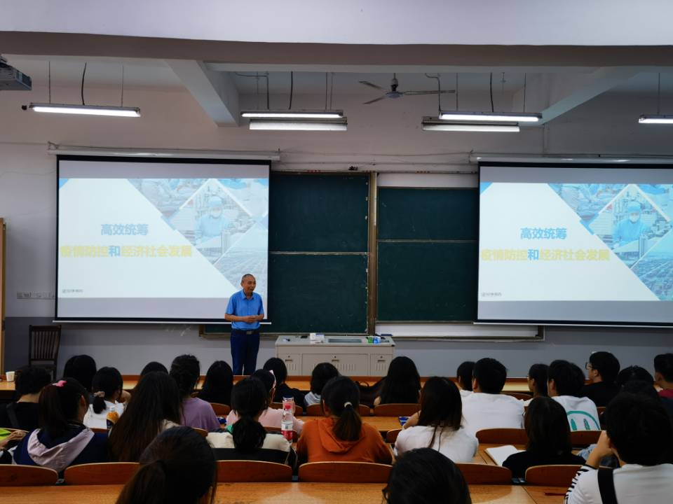 9月29日上午,阮怀宁以《高效统筹疫情防控和经济社会发展》为主题为20级给排水学生讲授思政课。分别从疫情防控方针政策、当下我国经济大盘趋稳、如何高效统筹疫情防控和经济两者关系三个方面详细讲解。首先,回顾了将近3年以来疫情防控方针,坚持“外防输入、内防反弹”总策略和“动态清零”总方针,坚持人民至上、生命至上的理念,此次疫情得到充分控制,得益于党中央科学决策;其次,他从产业运行、市场需求、重点地区、民生问题等方面,详细阐述了经济社会发展稳中向好的局势;最后,他强调,在疫情处于关键时期,要更加突出“科学精准、动态清零”,稳住经济,稳中求进,加快构建新发展格局。
