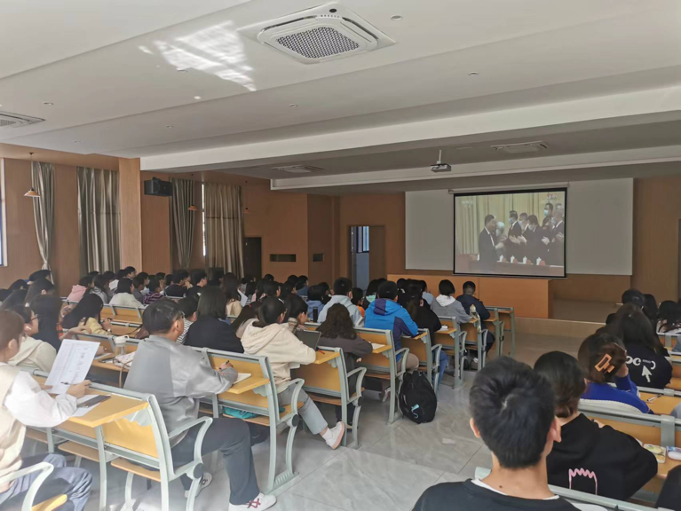 10月16日上午9:30,校领导和学生代表着装整齐、佩戴党徽,早早来到F417会议室,做好集中收看开幕会现场直播盛况的准备。