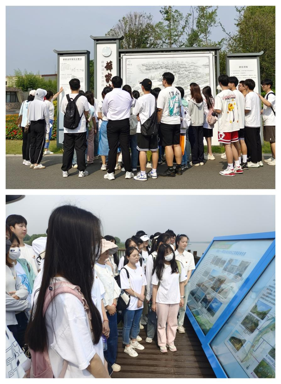 来到薛家洼,学生党员们被眼前美景深深吸引,江水清澈荡漾,滩涂绿意葱茏,岸边树木蓊郁,让人全然忘却夏季的炎热。在园区工作人员指引下,大家重走习总书记足迹,驻留观景台参观学习。