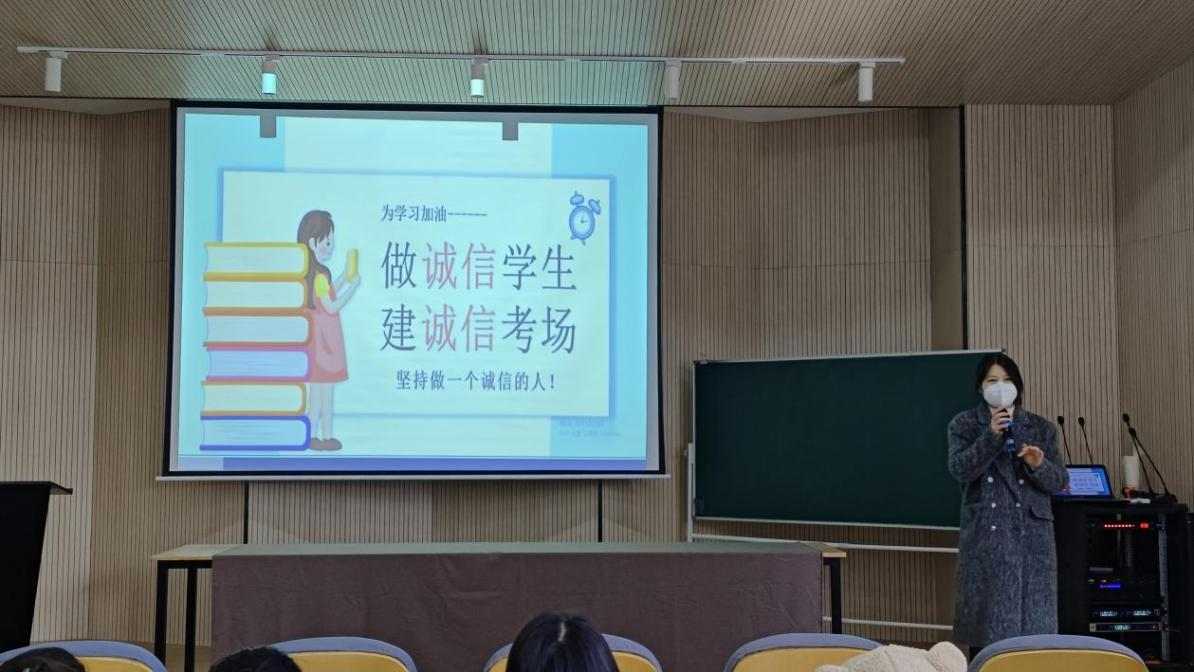 22级辅导员刘慧老师就校园诚信、安全相关案例展开讲话,她从各个方面阐述了“诚信”的重要性,引导同学们树立正确的考试观和价值观,强调在考试过程中严格要求自己,自觉抵制作弊行为。同时,着重强调了寝室用电安全,要求同学们及时处理生活垃圾,杜绝火灾隐患。