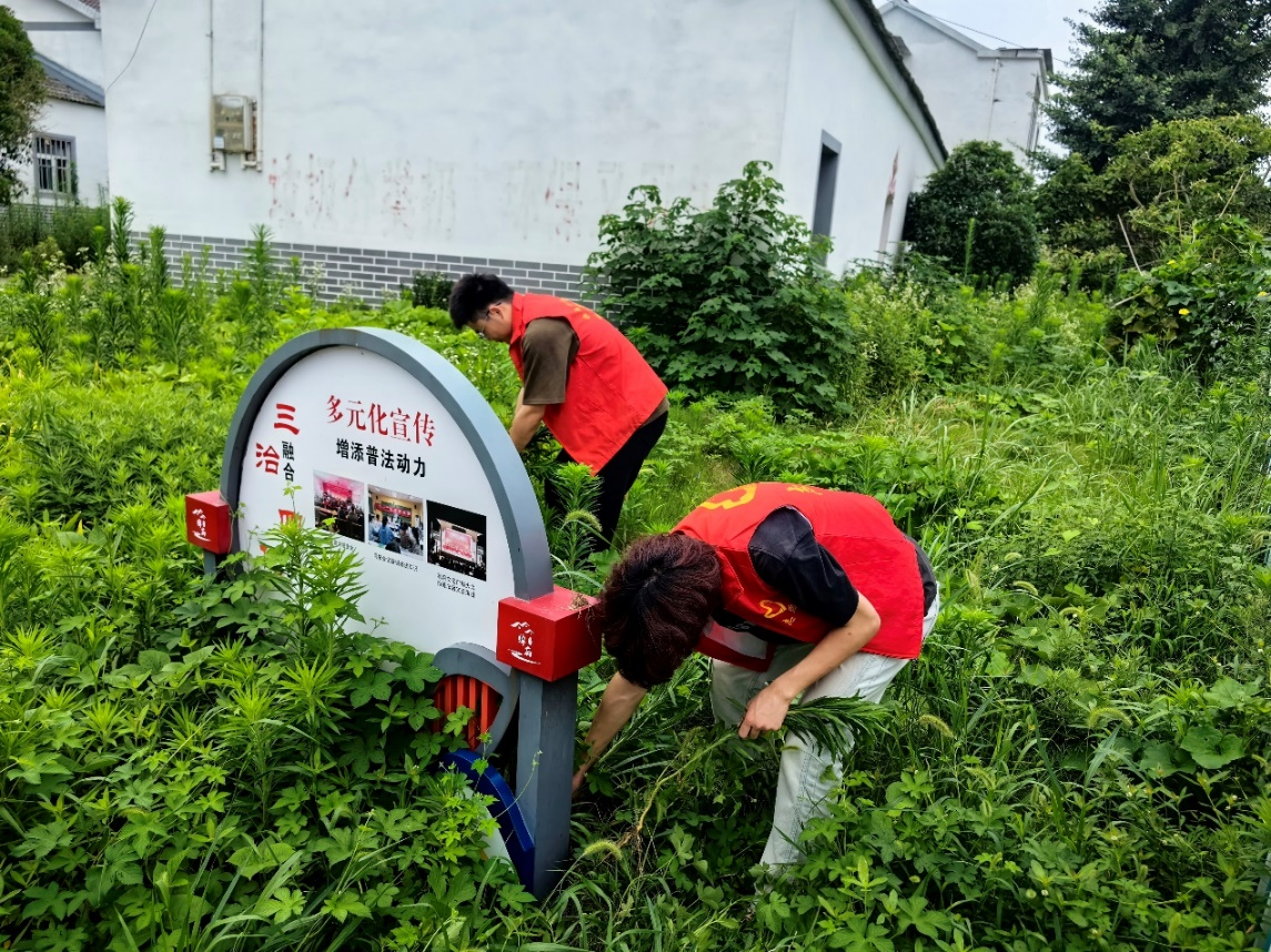 实践队员们也积极参与到了绰庙社区日常劳动建设之中。在街道路口、坝边林地,队员们分工明确,帮助保洁人员清扫路面;为维护街道整洁进行除草活动;帮助农户们清理农田杂草,疏通灌溉水渠,确保农作物茁壮成长。队员们用实际行动致敬辛勤劳动,艰苦奋斗,甘于奉献的劳动者,不仅加深了与村民们的感情,体会到了劳动人民的辛勤劳作,也进一步弘扬了伟大的劳动精神。