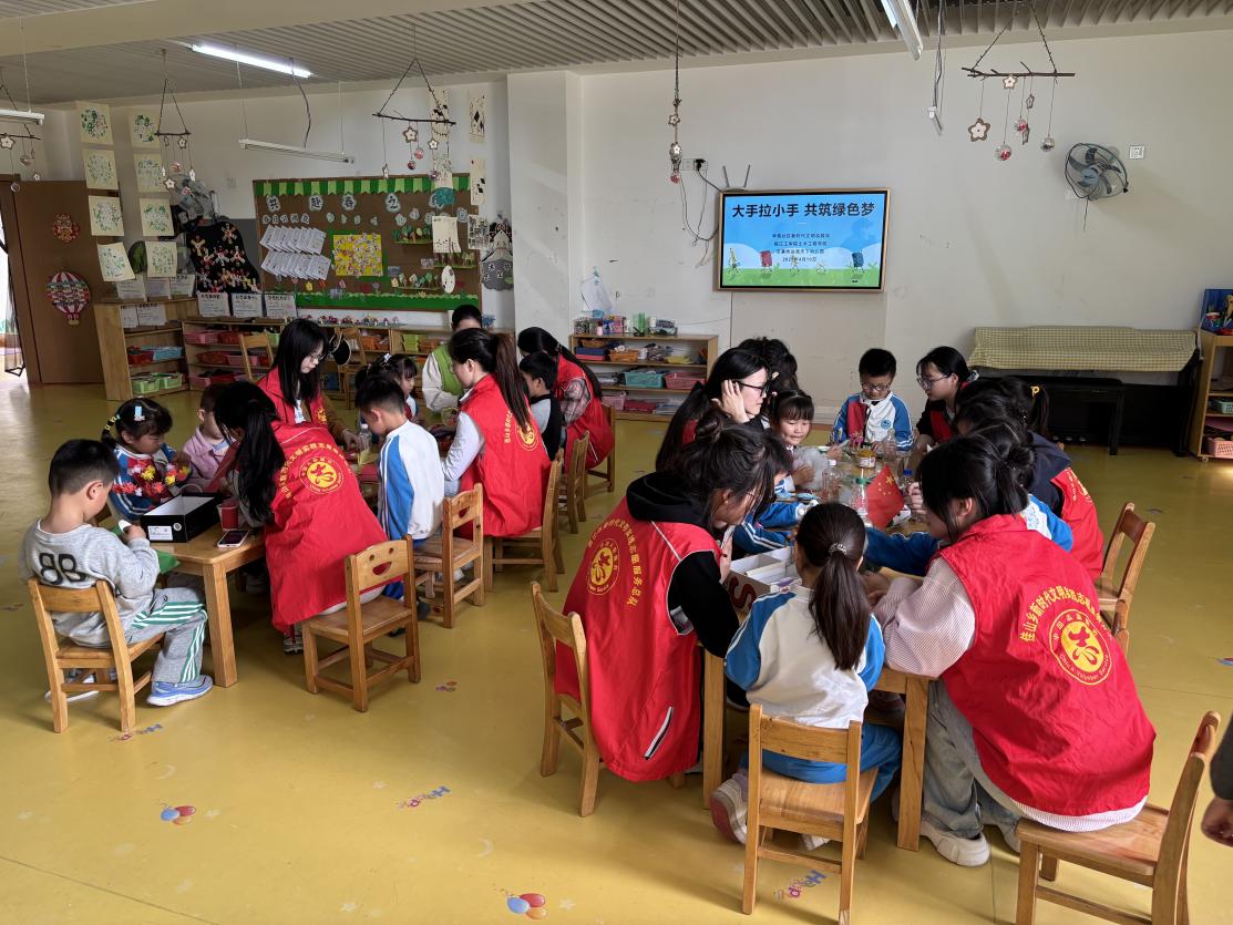 为深化大学生社会实践与社区服务融合,传递绿色环保理念,4月10日上午,省样板党支部、土木工程学院学生二支部联合学院其他学生支部、团员代表、群众代表等,与学苑社区党委共同组织大学生志愿者走进达观天下芝惠坊幼儿园,开展“大手拉小手 共筑绿色梦”环保工作坊活动。通过趣味讲解、创意手工等形式,与孩子们共同探索垃圾分类的意义,将废旧物品“变废为宝”,让绿色生活的种子在童心中生根发芽。
