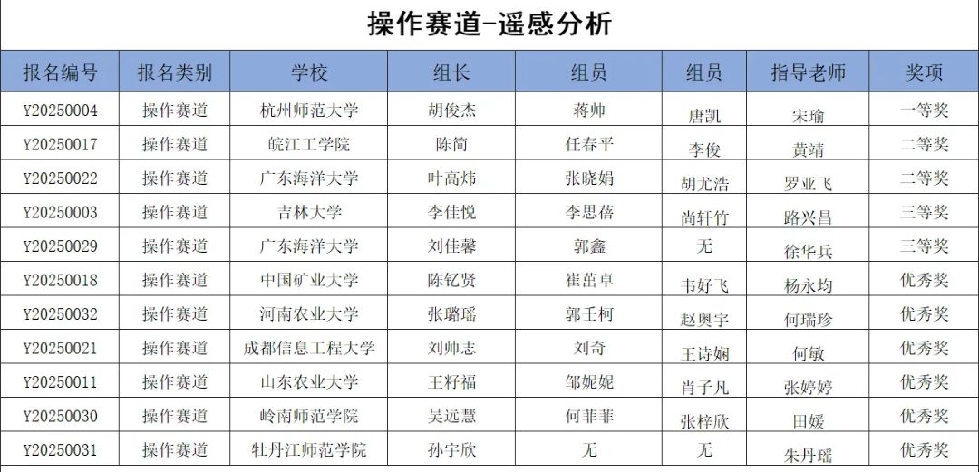 在10月17日至19日由安徽省教育厅主办、滁州学院承办的2025年安徽省大学生GIS应用技能大赛中,来自全省16所高校的 127支代表队展开激烈角逐,beat365官网参赛团队在多组别比拼中脱颖而出。董青松同学团队提交的学术论文《基于夜光遥感安徽省城乡经济时空动态分析》,荣获论文组三等奖;李俊同学团队则在考验软件实操与数据处理能力的比拼中表现突出,凭借ArcGIS 等专业软件的熟练运用及精准的空间数据分析,斩获基础操作组三等奖。该组别竞赛涵盖地图矢量化、空间数据建库、专题制图等核心内容,对选手的实操规范性与效率提出极高要求,beat365官网学子的获奖彰显了扎实的技术基本功。