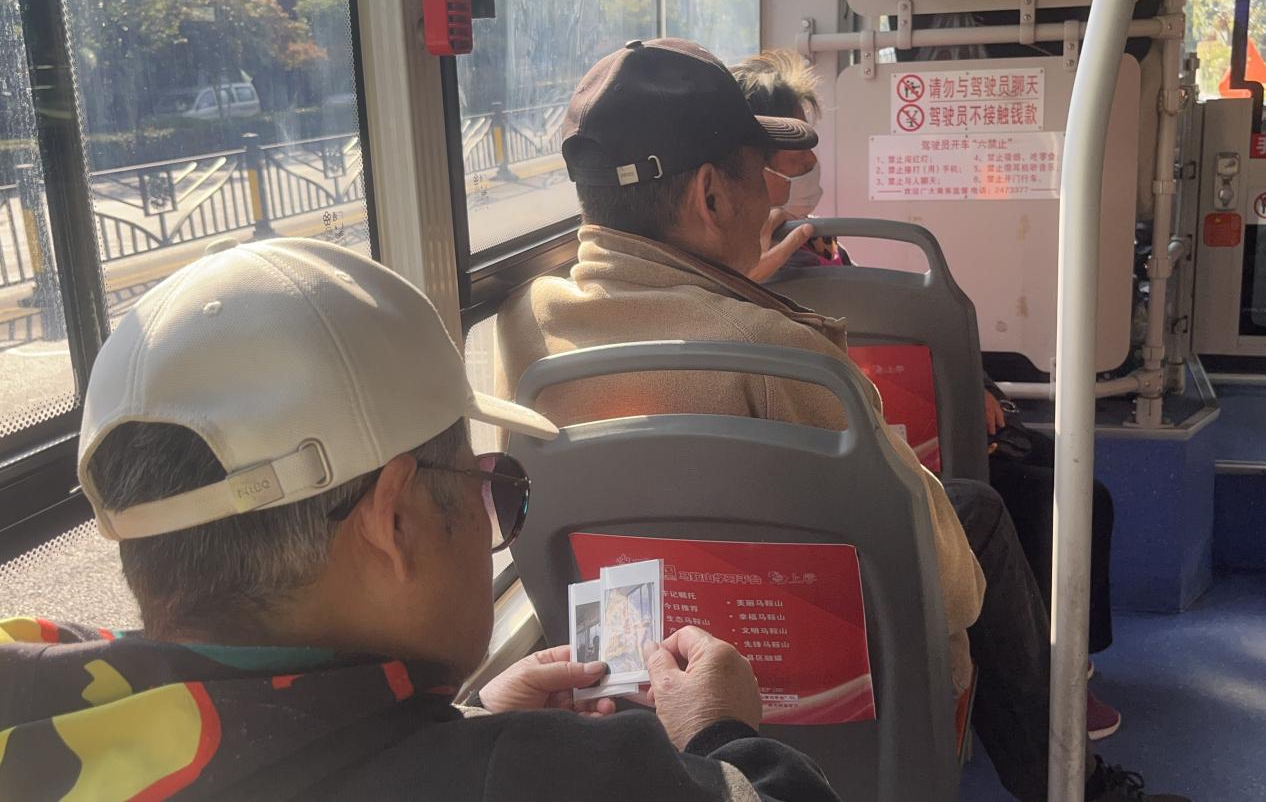 活动当日,同学们怀揣热忱,将专业所学与社会服务紧密结合。在前往南湖体育公园的途中,发展对象车徐勇同学率先行动,细心为一对散步的老年夫妻分别用拍立得拍摄照片。随着相纸缓缓显影,老人们慈祥的笑容被瞬间定格。这份“即拍即得”的心意被当场送达,带来了最直观的惊喜与感动,老夫妻连声道谢,车厢内洋溢着温馨融洽的氛围。