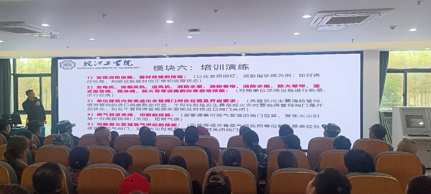 11月14日下午,为了以实践行动诠释责任与担当,郑蒲港校区精心组织消防专题培训,由潘跃林面向全体后勤保卫员工授课,开展系统性宣传培训。