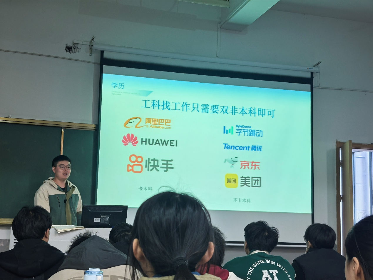 为帮助在校生科学规划未来发展,做好学业与职业衔接,计算机与人工智能学院于2025年12月5日在霍里山校区A102教室成功举办就业指导经验分享讲座。活动特邀2023届计算机科学与技术专业优秀校友、现就职于美团(北京)总部的陈璐阳担任主讲嘉宾,围绕学业规划、行业认知与职场适应等主题,为同学们带来了系统而实用的经验分享。