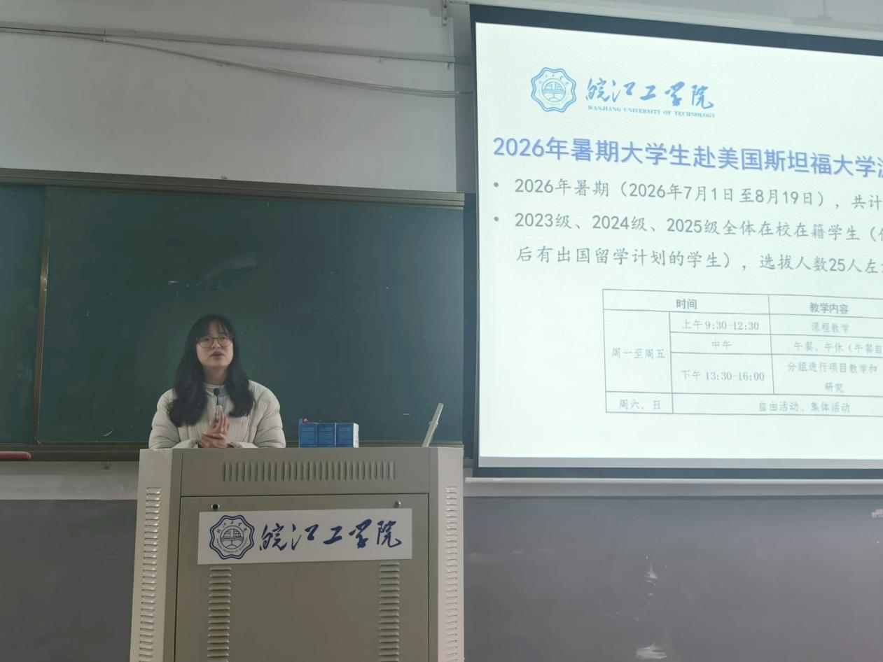 分层精准指导,赋能学业发展。 学院结合各年级学生特点,分类施策开展学业规划指导:大一、大二学生重点夯实专业基础,鼓励积极参与学科竞赛,做好学情分析与复盘;大三、大四学生聚焦考研备考、就业求职等核心任务,明晰发展路径。班会还同步开展留学研学项目动员,介绍英国、韩国留学及斯坦福暑期研学等项目,拓宽学生国际视野,助力多元发展。