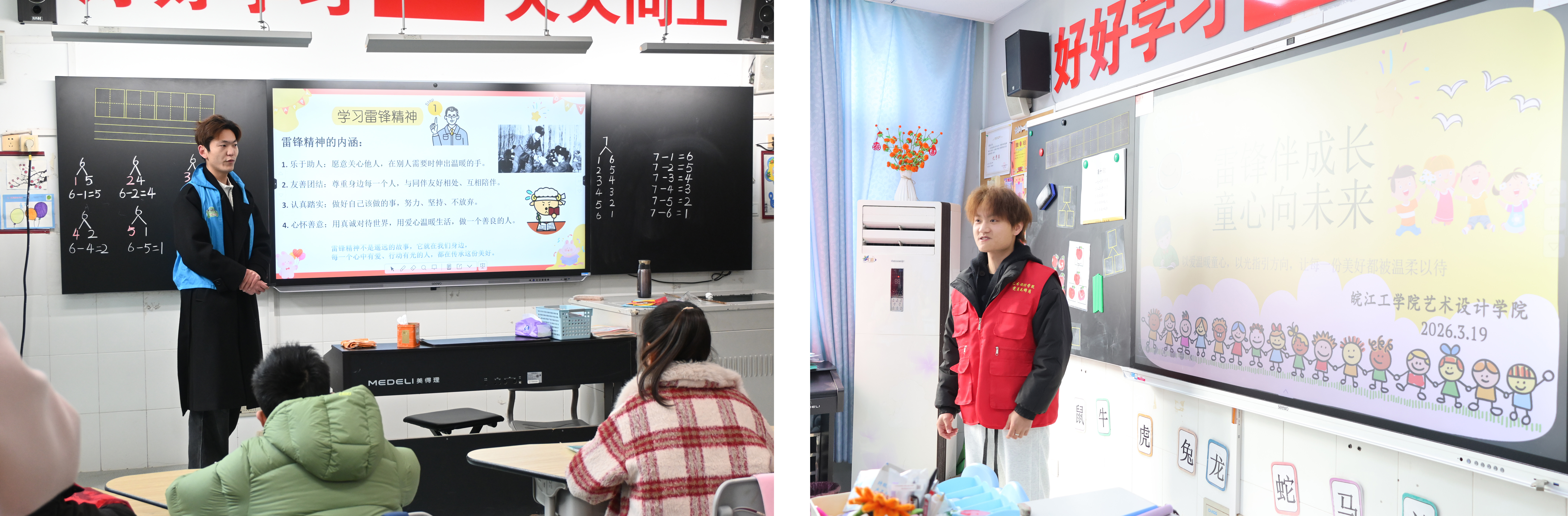 本次活动分两组同步开展,志愿者们分别走进马鞍山特殊教育学校启音楼二楼孤独症班和启智楼二楼培智班,以生动的PPT形式,向孩子们讲述雷锋事迹、阐释雷锋精神内涵。通过图片展示、故事讲述、互动问答等方式,引导孩子们认识雷锋、了解雷锋,在心中播下崇德向善、乐于助人的种子。宣讲内容通俗易懂、氛围温馨融洽,孩子们在直观感知中理解了奉献与友爱的意义。