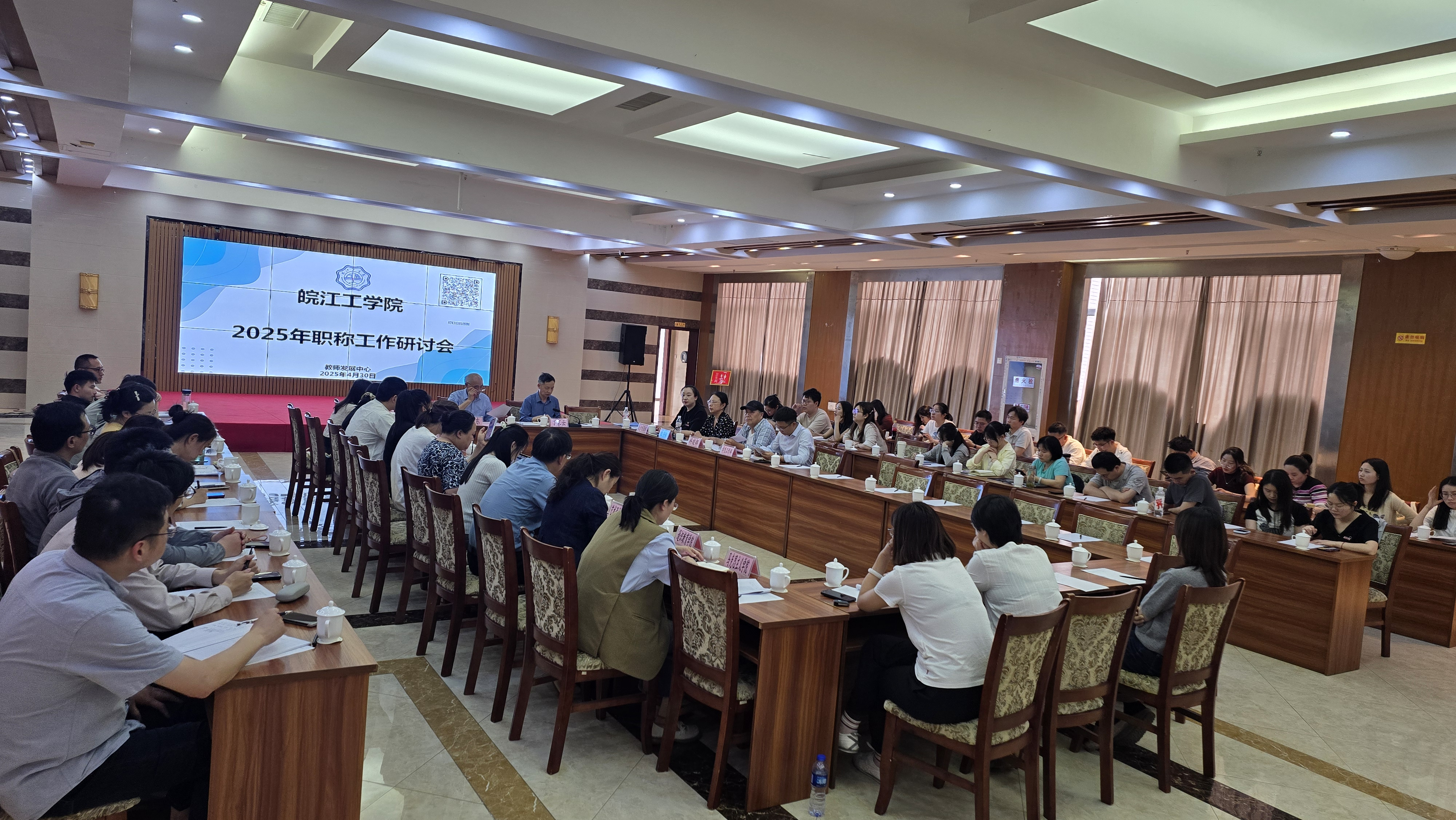 教师发展中心于4月30日中午1点在文海宾馆四楼多功能厅召开beat365官网2025年职称工作研讨会,主要围绕2025年即将开展的职称评审和聘用工作开展研讨。由党委书记丁家云主持,常务副校长郑明东,主要职能部门负责人及相关工作人员,和各学院专任教师代表共约80人参会。