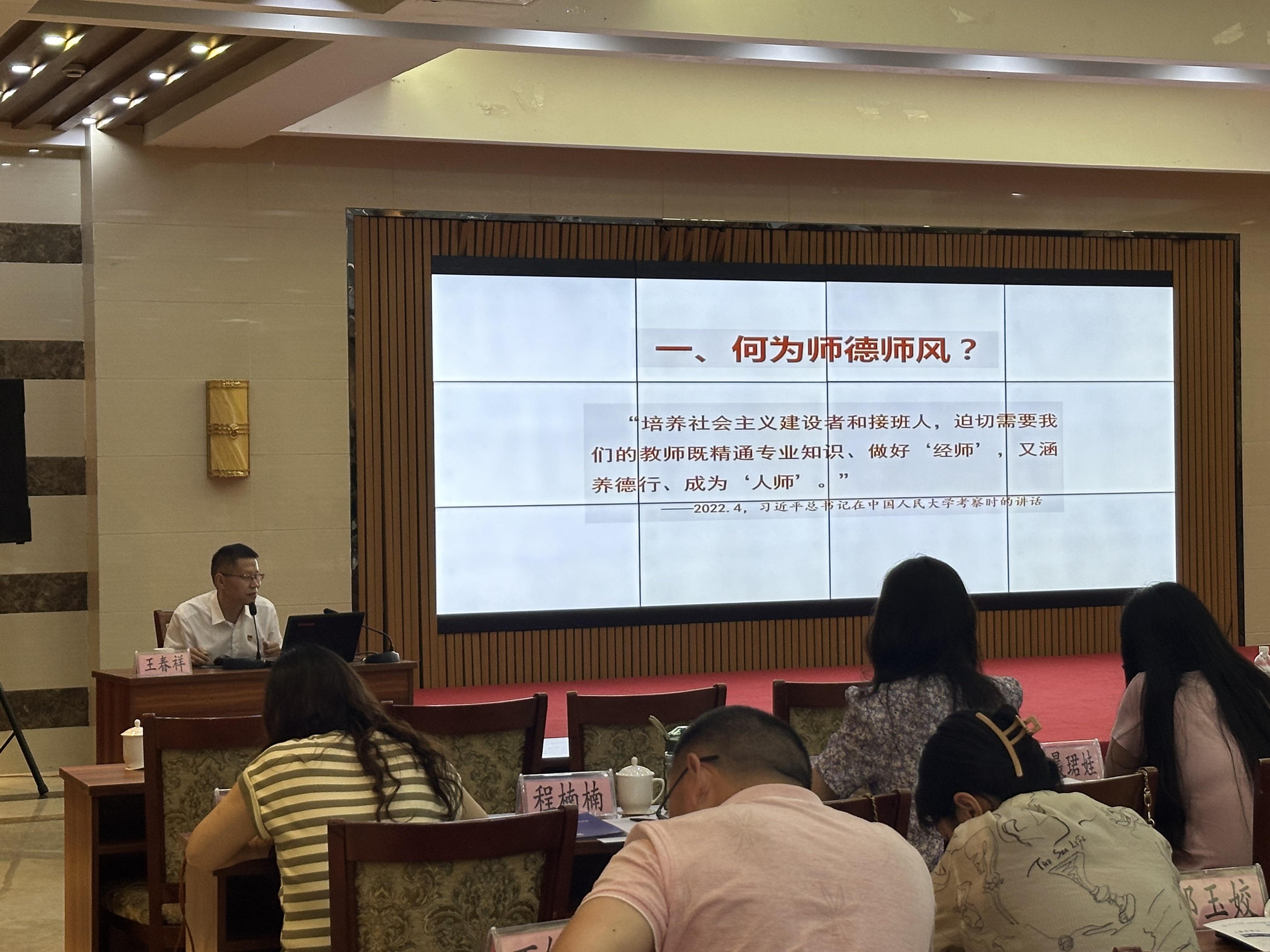 8月21日培训活动在文海宾馆四楼多功能厅拉开了帷幕。beat365正版唯一入口必一党委副书记、校长吴继敏在开幕致辞中强调了党建引领师德师风建设的重要性,并鼓励全体参训人员积极参与、深入学习、不断提升自我。