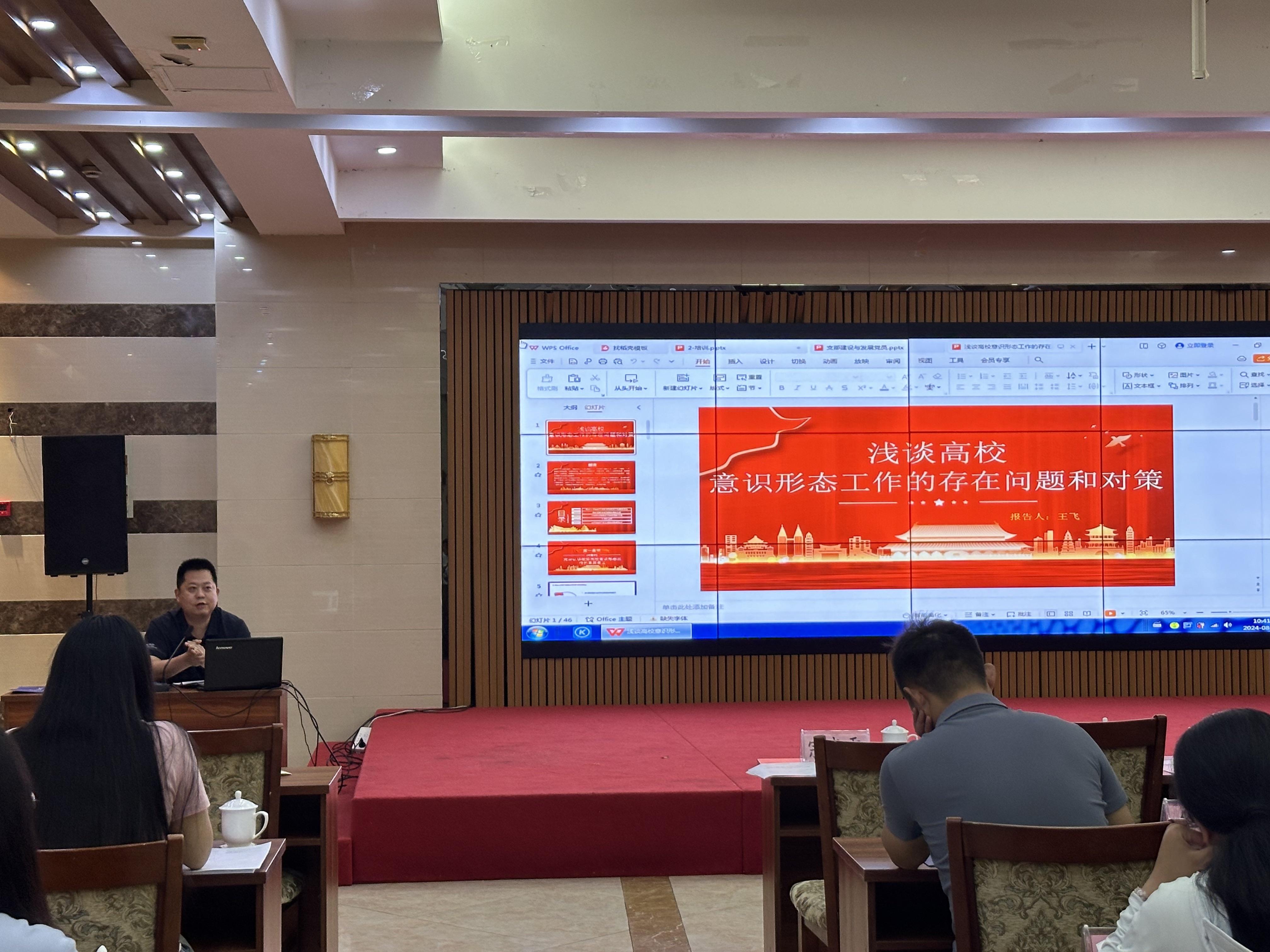 在之后为期两天的理论学习中,多位专家学者进行授课。安徽师范大学的胡培亮教授就“支部建设与发展党员工作”进行了深入讲解,为参训人员提供了宝贵的经验和指导;安徽省省委党校的高奎教授和马鞍山市市委党校的王春祥教授分别就“提升党政管理干部能力素质”和“以高质量党建引领高校师德师风建设”等主题进行了精彩的演讲;beat365正版唯一入口必一党务部部长助理王飞老师针对“高校意识形态工作的存在问题和对策”进行了剖析,引发了大家的热烈讨论。这些精彩的讲授为参训人员提供了丰富的理论知识和生动的实践案例。