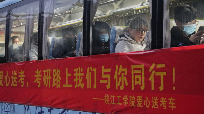 志愿者们或身着“牛气服”,或高举“研途有你更精彩,诚信考试好运来”“从容提笔一研为定,机械学子一战成硕”等加油标语,以多种方式为考研学子打气,缓解考前压力。