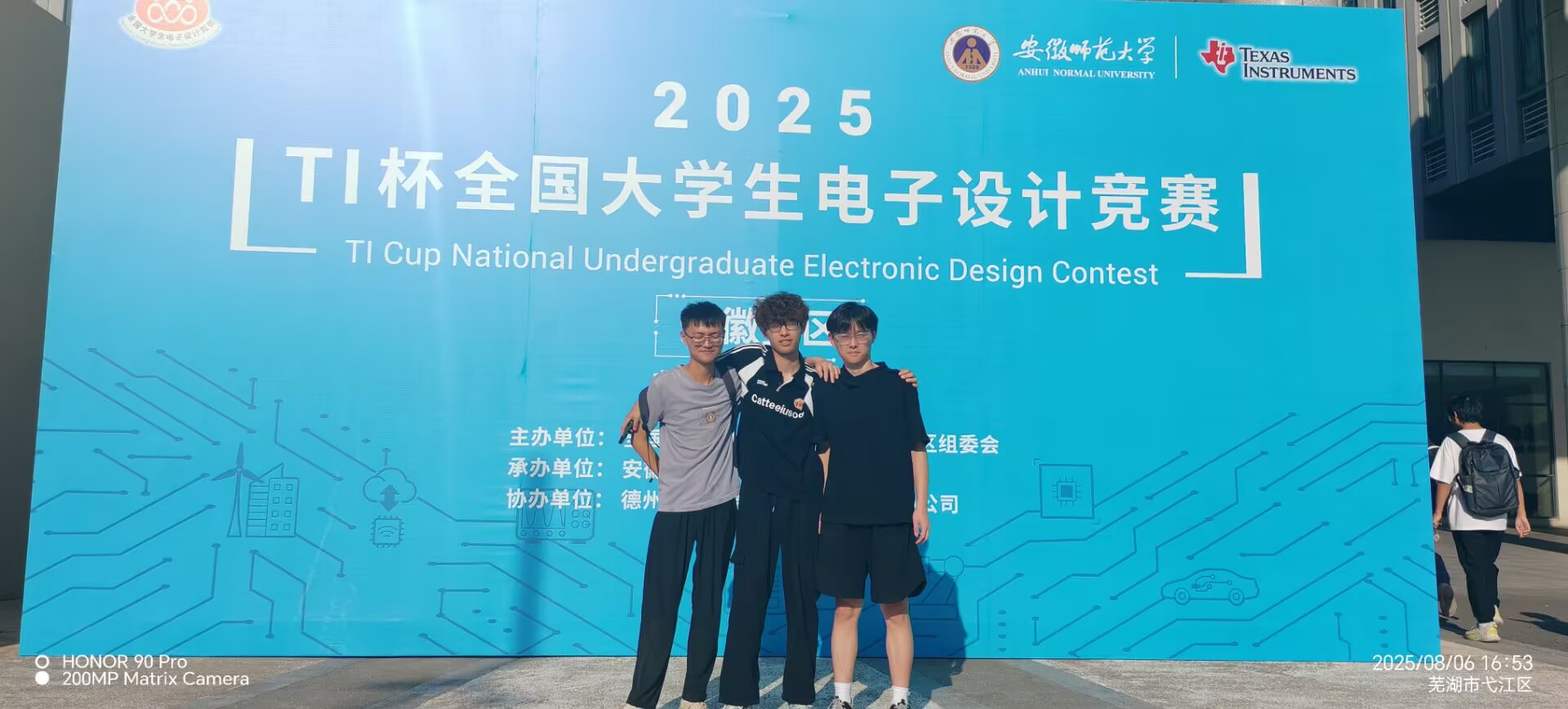 暑期学习期间,团队还学习了知识产权相关知识,掌握了如何查询专利、保护专利,并避免侵犯他人专利。在电赛前夕,为突破竞赛中的难点问题,团队查找各类相关资料,针对电赛中“电路故障排查难、程序调试效率低”等常见问题,邀请学院电子信息专业教师开展专题讲座,系统讲解电路焊接规范、万用表与示波器使用技巧、程序调试常见错误排查方法。讲座后,队员们在实验室开展实操训练,模拟电赛紧张场景,限时完成电路搭建与故障修复任务,将理论知识转化为快速解决问题的能力。电赛进行的四天三夜里,团队成员夜以继日地奋战,面对问题不断尝试,反复试验直至成功。