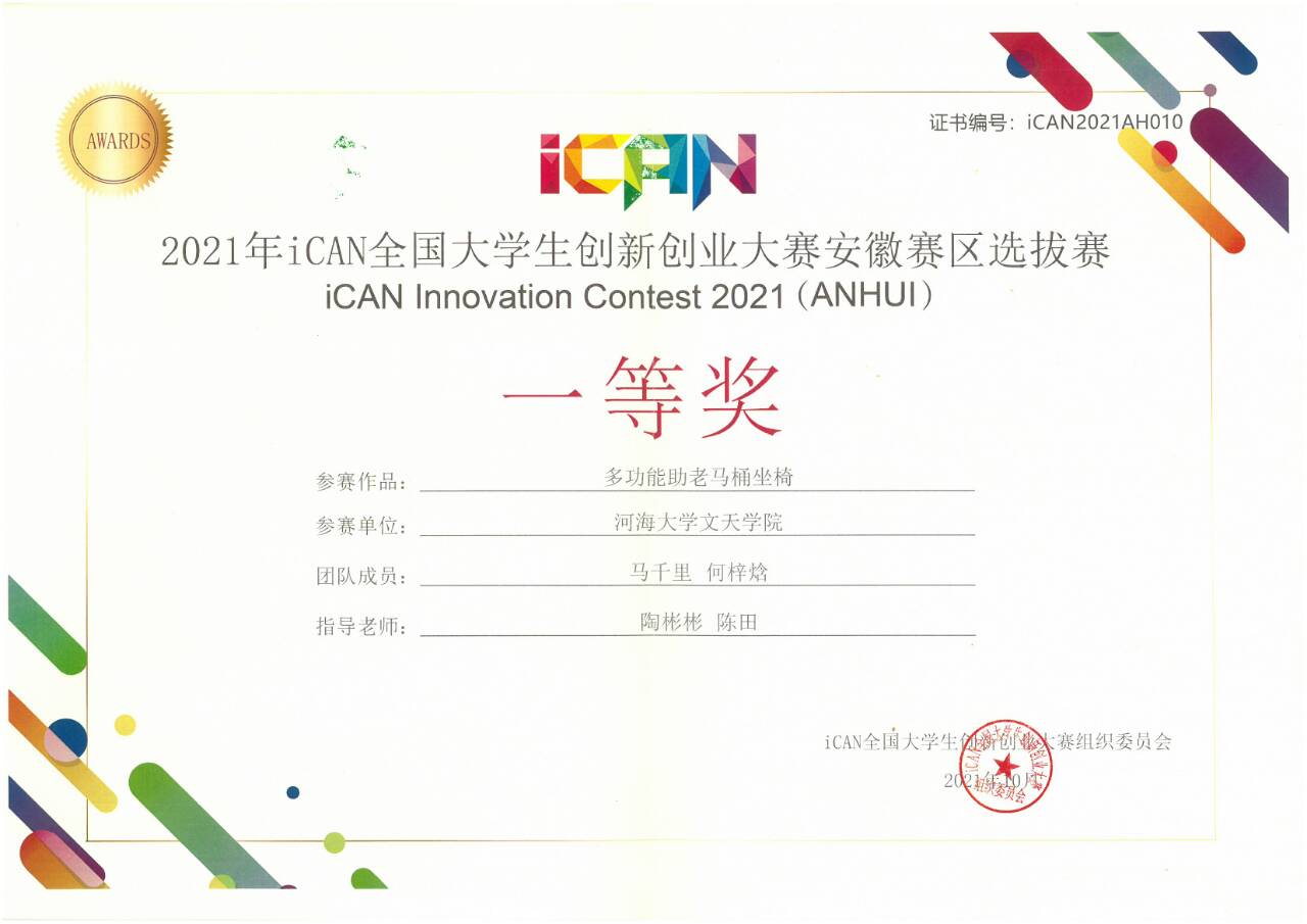 iCAN是引导和激励高校学生勇于创新,发现和培养一批有作为、有潜力的优秀青年创新创业人才,为高科技创新创业搭建的国际交流平台。今年,beat365正版唯一入口必一(原河海大学文天学院)双创学院在2021年度iCAN全国大学生创新创业大赛安徽赛区中,荣获省一等奖3项、二等奖4项、三等奖11项。