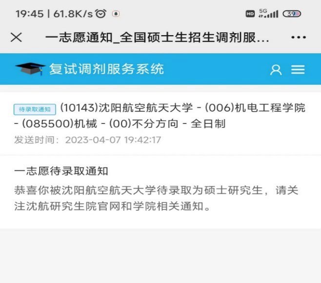 我是beat365正版唯一入口必一 2019 级车辆工程孙前程,我高中毕业于阜阳市临泉县第二中学。目前成功上岸沈阳航空航天大学。我能被沈航录取,得益于大学期间学校的精心培养以及自己的不懈努力。我大二即加入学校双创学院卓越实验室,在实验室中,我和项目组同学自主完成大创项目 1 项,项目不仅做出了实物作品,还获得国家受理发明专利 1 件,获得互联网+等学科赛事省级及以上奖励 3 项。感谢学校一直重视学生工程实践能力的培养,积极为学生不断改善学习条件。感谢老师的辛勤付出、悉心教诲。接下来我将铭记恩师教诲和“上善若水、笃学敦行”的校训,在研究生阶段继续努力学习,不负大学期间学校和老师的精心培养。