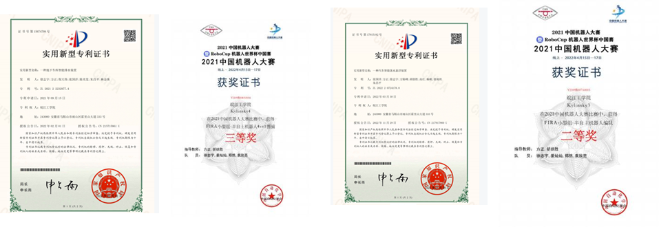 在实验室期间,积极学习参加各类项目。在2022年参加的中国机器人大赛中,fira5v5顺利打败上海电力大学等各类强队以第四名的成绩获得中国机器人大赛fira5v5赛项一等奖,并成为下一年的种子队。Fira11v11赛项在淘汰赛中遇到上届冠军西北工业大学,以国二的成绩结束比赛。