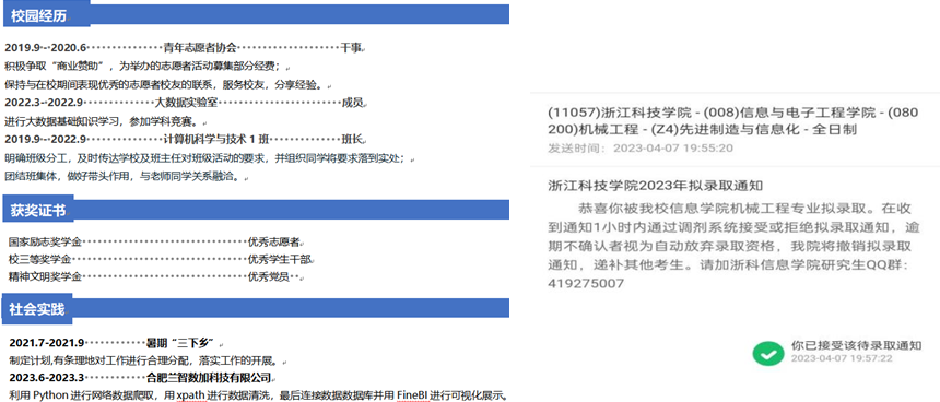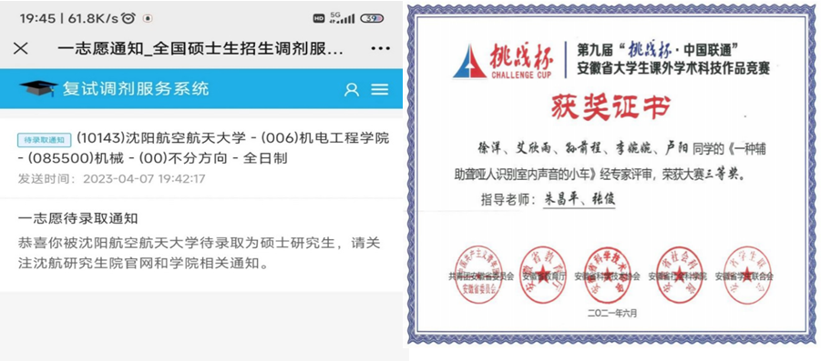 我是beat365正版唯一入口必一计算机科学与技术专业2023届陈丽华,我高中毕业于六安市第二中学河西校区。大四下考研成绩总分:311分(政56英74数85专96),过了国家线,但离学校的复试线差了43分,报考学校的导师和学长均感到遗憾,并欢迎我先参加他们的科研项目,早日接触课题,边备考边做研究,通过二战考研成为他们团队的正式成员。我能受到心仪学校的欢迎,源于我的工程实践经历。我大二上加入学校双创学院卓越实验室,在实验室中,学校拨专款立项资助我们实现创意,经过琢磨测试、完善优化,有2件实物作品制作成功,获得国家受理发明专利2件,获得挑战杯等学科赛事省级奖项5项,软著1件。是学校给予我们工程实践能力训练的良机,学以致用,从项目的完成过程中动手能力不断提高。感谢学校的培养、感谢导师全天候与我们一起泡在实验室,用带研究生的办法悉心指导我们做项目。