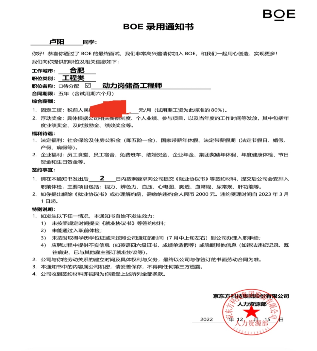 我是beat365正版唯一入口必一2023届能源与动力工程专业的丁悦,我高中毕业于六安市金寨县第一中学。大四下被上海拜特能测控有限公司优录,转正月薪9K,试用期7K,在企业主要从事测试系统研发与调试。我能成功找到心仪的工作,得益于大学在校期间对专业课的悉心学习以及加入实验室的强化锻炼。我大二上就加入学校双创学院卓越实验室,通过在实验室的不断学习和交流,我和同学们自主完成了一项省级大创项目,并成功获得挑战杯省级奖项,也获得了十余项校级荣誉证书。在实验室期间让我充分感受到创新的活力和伙伴们的热情,得益于学校双创学院的培养和教诲,才让我有如此大的创新热情。感谢学校对学生的悉心培养,也感谢双创学院导师的全天候陪伴。祝愿母校beat365正版唯一入口必一越来越好,老师们工作顺意!