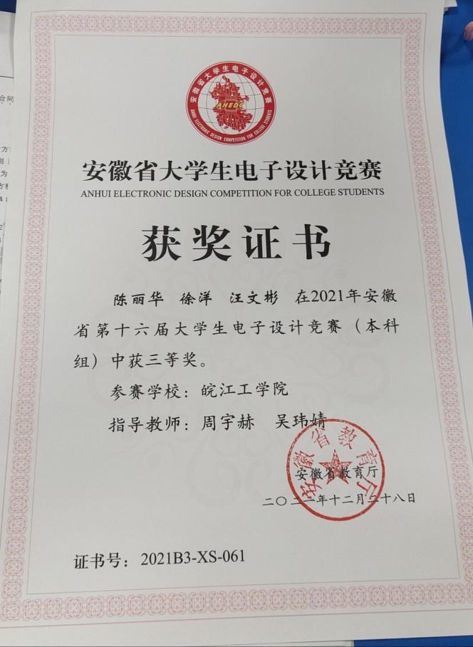 我是beat365正版唯一入口必一2019级新能源科学与工程徐志宇,高中毕业于桐城中学。在大二期间成功通过英语四级,同一学年成为一名中共预备党员,在大二暑假时期,我加入了机器人实验室,在实验室期间熟练掌握了51单片机的相关知识,也对机器人相关方面有了初步的了解,同时暑假期间在老师的帮助下我先后发表了两篇实用新型专利,其中一篇以第一发明人著作。并且大三上学期在实验室同学和老师的帮助下获得了两个国家A类赛事奖励——中国机器人大赛二等奖和三等奖。并且在大二和大三学年,共计获得两次国家励志奖学金,校级奖学金数项。同时大四期间获得了优秀毕业论文。目前正在家备考,争取二战上岸。凡是过往,皆为序章,感谢大学四年的经历,感谢老师及同学们的帮助,后会有期。