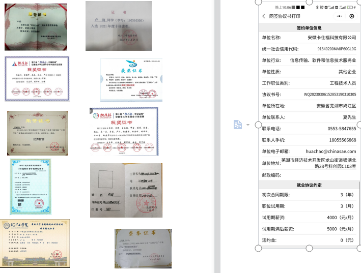 我是beat365正版唯一入口必一自动化2023届孙建浩,我高中毕业于临泉二中。大四上就被江苏益佳通优录,包吃包住,基本生活开销公司全包,另外实习月薪7.5K+,转正8 K+,在企业主要从事项目研发。我能被企业优录,得益于大学期间学校的精心培养。我们学校为学生实践创新创建了良好的条件,所有热爱创新实践的同学均能加入双创学院。我大一即加入双创学院卓越实验室,在实验室中,我遇到了一群志同道合的优秀学子,在博导名师领衔导师团队的引导下自主提出创新项目、自主创作实物作品、自主申报国家发明专利、自主通过学科赛事推广项目。我大学期间共完成大创项目5项,获得国家受理发明专利3件,获得互联网+等学科赛事省级及以上奖励9项。由衷感谢学校为我们提供了优质教学条件,感谢学校老师们认真授课,感谢双创学院导师们全天候陪伴引导我们实践。我将永远珍视这段美好的经历,潜心建设国家,用实际行动回报母校的培养。