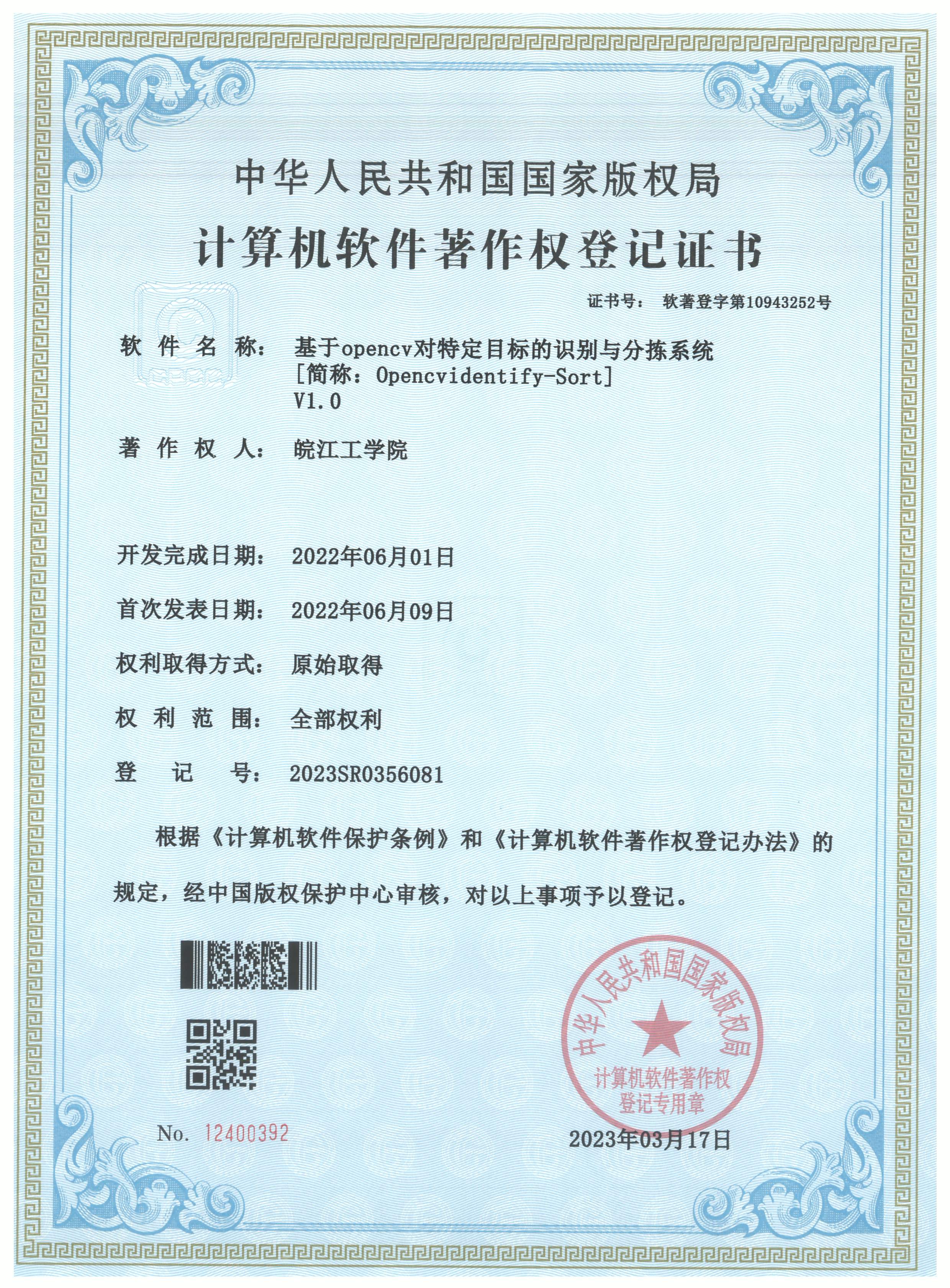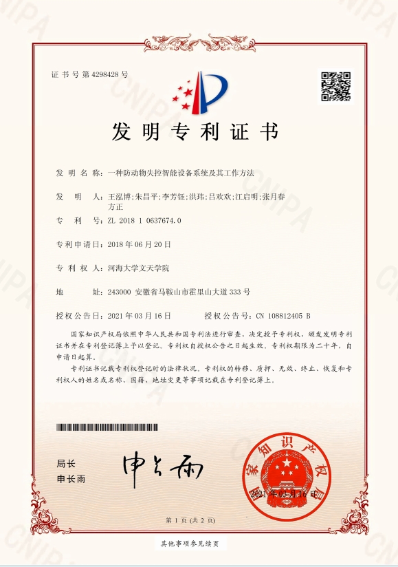 学生授权发明专利等证书