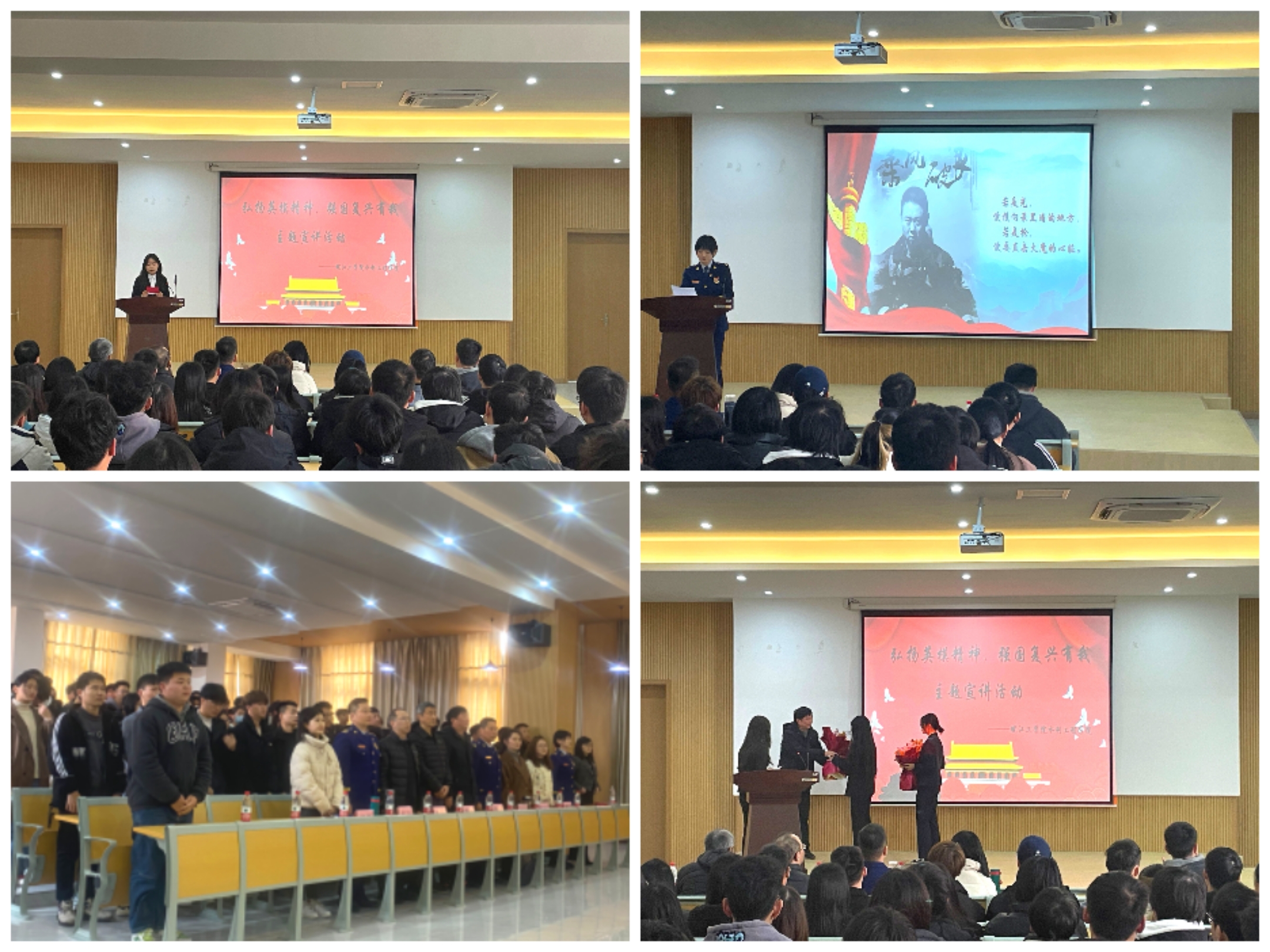 现场宣讲,赢得全场师生阵阵掌声,感人至深的故事,用心用情的讲述,传递出强大的向上向善能量。“革命先烈们意志坚强,为国家、为人民流尽最后一滴血。缅怀先烈是对现在幸福美好生活的珍惜,是对历史的铭记,我们应该继承先辈的革命精神,在新时代做出自己的贡献。”听完王再生的事迹后,21水工程伟峰同学说道。“哪有什么岁月静好,只是有人在替我们负重前行。”含着热泪听完彭迪事迹后,学生纷纷表示要以杰出校友彭迪位榜样,做有理想、敢担当、能吃苦、肯奋斗的新时代好青年!