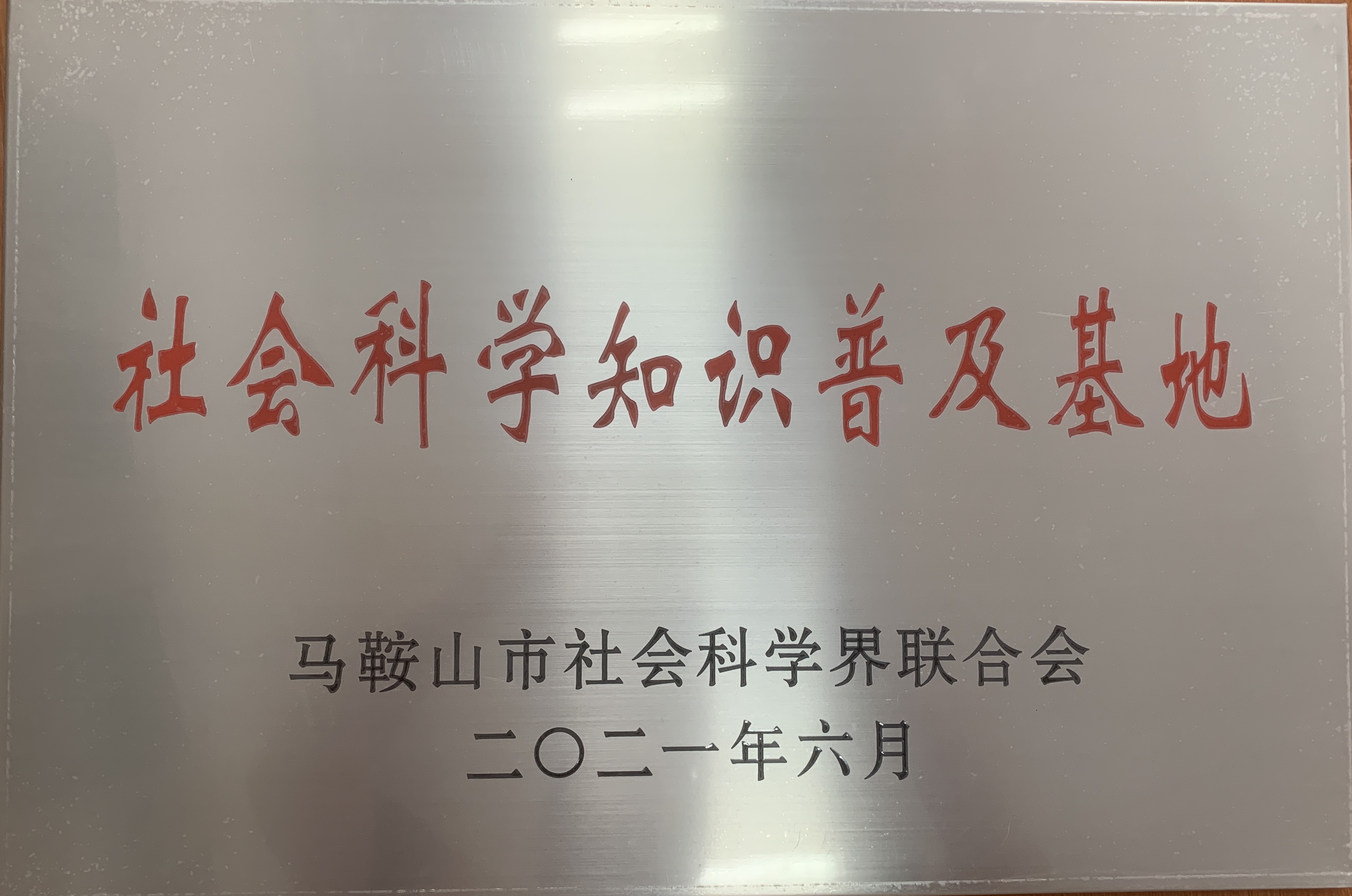 日前,beat365官网组织申报了马鞍山市“社会科学知识普及基地”并获得市社科联批准,成为马鞍山市首批“社会科学知识普及基地”。