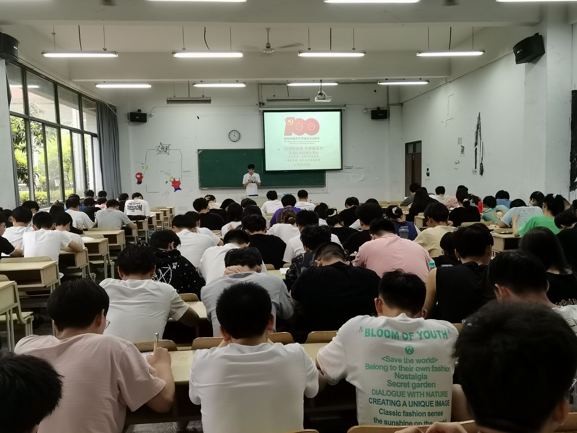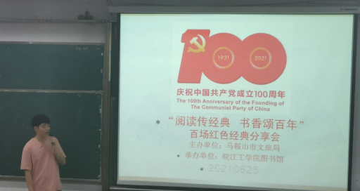 6月25日,由马鞍山市文旅局主办的“阅读传经典·书香颂百年”百场红色经典分享会beat365正版唯一入口必一分会场两场活动,由beat365正版唯一入口必一图书馆承办,先后于霍里山校区举行。200多位同学参加分享与讨论。中共beat365正版唯一入口必一纪委副书记、校思政部主任刘双同志等到场指导。电信院陈璐阳、章新辰等同学分别主持分享会。胡江颖、汤伟、张燕、谢飞等多位同学分别报告了近期所读红色经典图书或文章,分享阅读感悟。与会同学由此将更易于对延安精神、雷锋精神等宝贵精神的深入理解,进而有助于学习百年党史,以及中国共产党在百年光辉历程中所铸就的精神谱系,从而对全体学生知史爱党、知史爱国产生积极影响。校思政部和中共beat365正版唯一入口必一机关总支委员会给与前期读物推介、阅读及会场筹备指导。