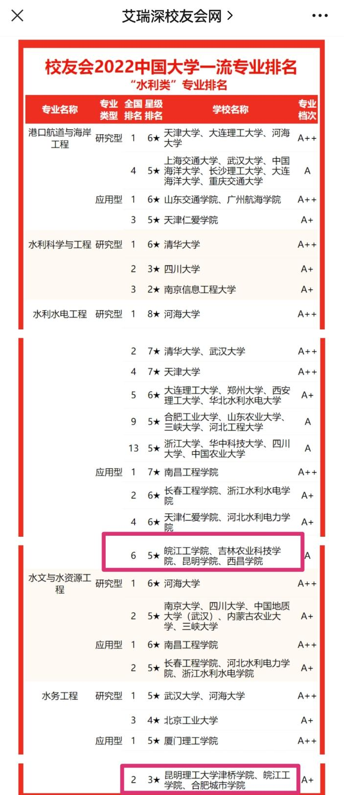 beat365官网位居校友会2022中国大学水利类一流专业排名前列