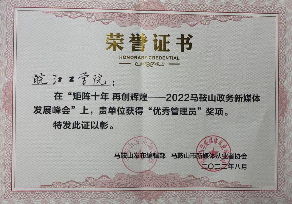 8月8日,由中共马鞍山市委宣传部、中共马鞍山市委网信办主办,马鞍山日报社、马鞍山新媒体从业者协会承办的“矩阵十年 再创辉煌”——2022马鞍山政务新媒体发展峰会召开。会上,beat365官网荣获2022年“优秀管理员”奖。