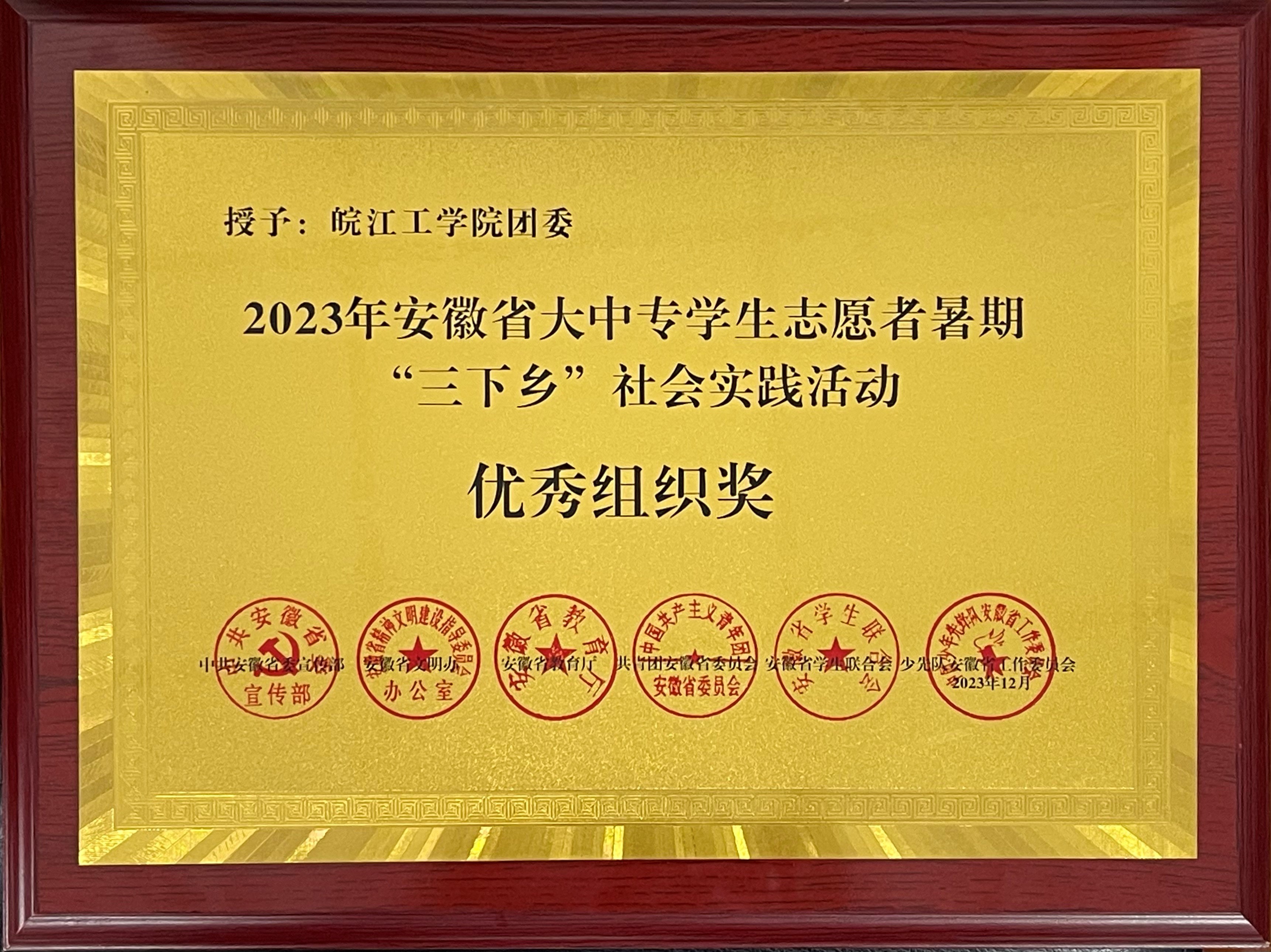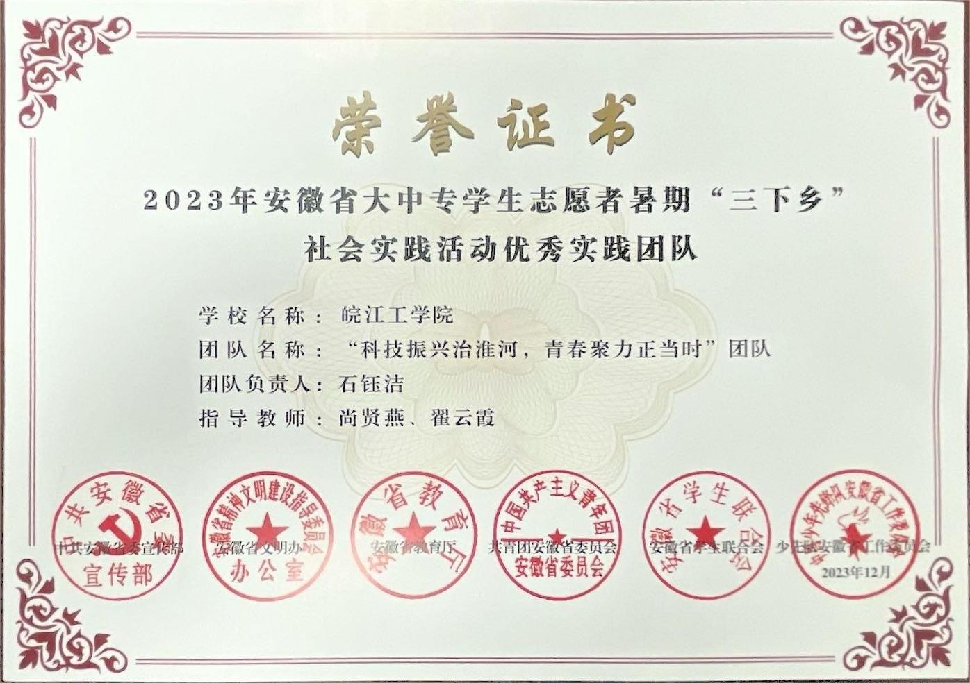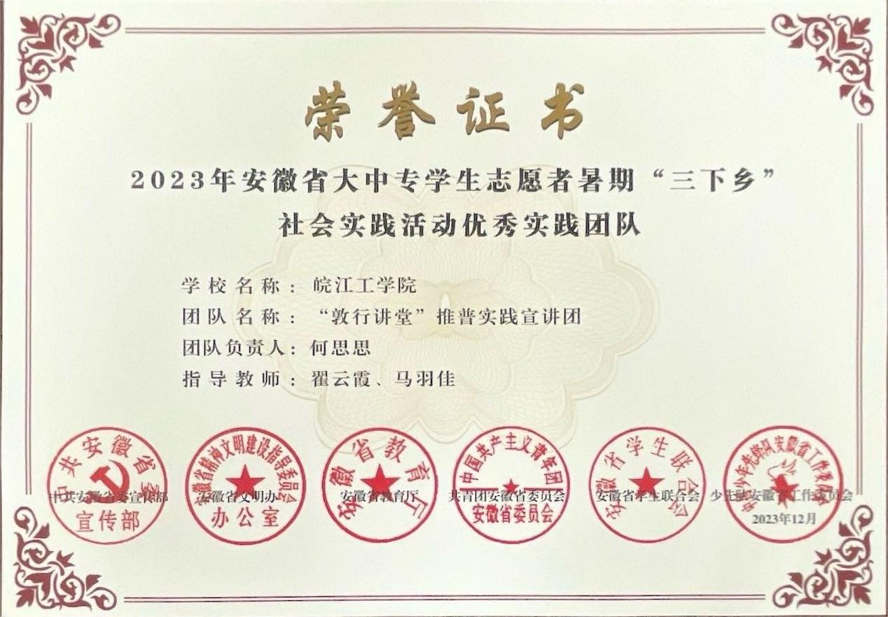 beat365官网荣获2023年安徽省大中专学生志愿者 暑期“三下乡”社会实践活动“优秀组织奖”等多项荣誉