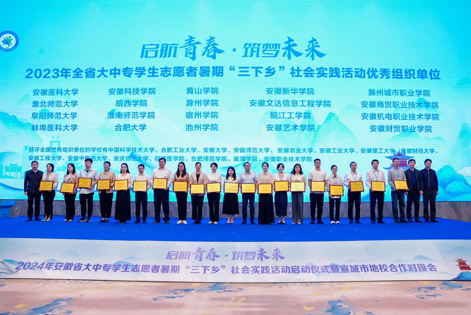 4月25-27日,2024年安徽省大中专学生志愿者暑期“三下乡”社会实践活动启动仪式暨宣城市地校合作对接会在宣城举行。