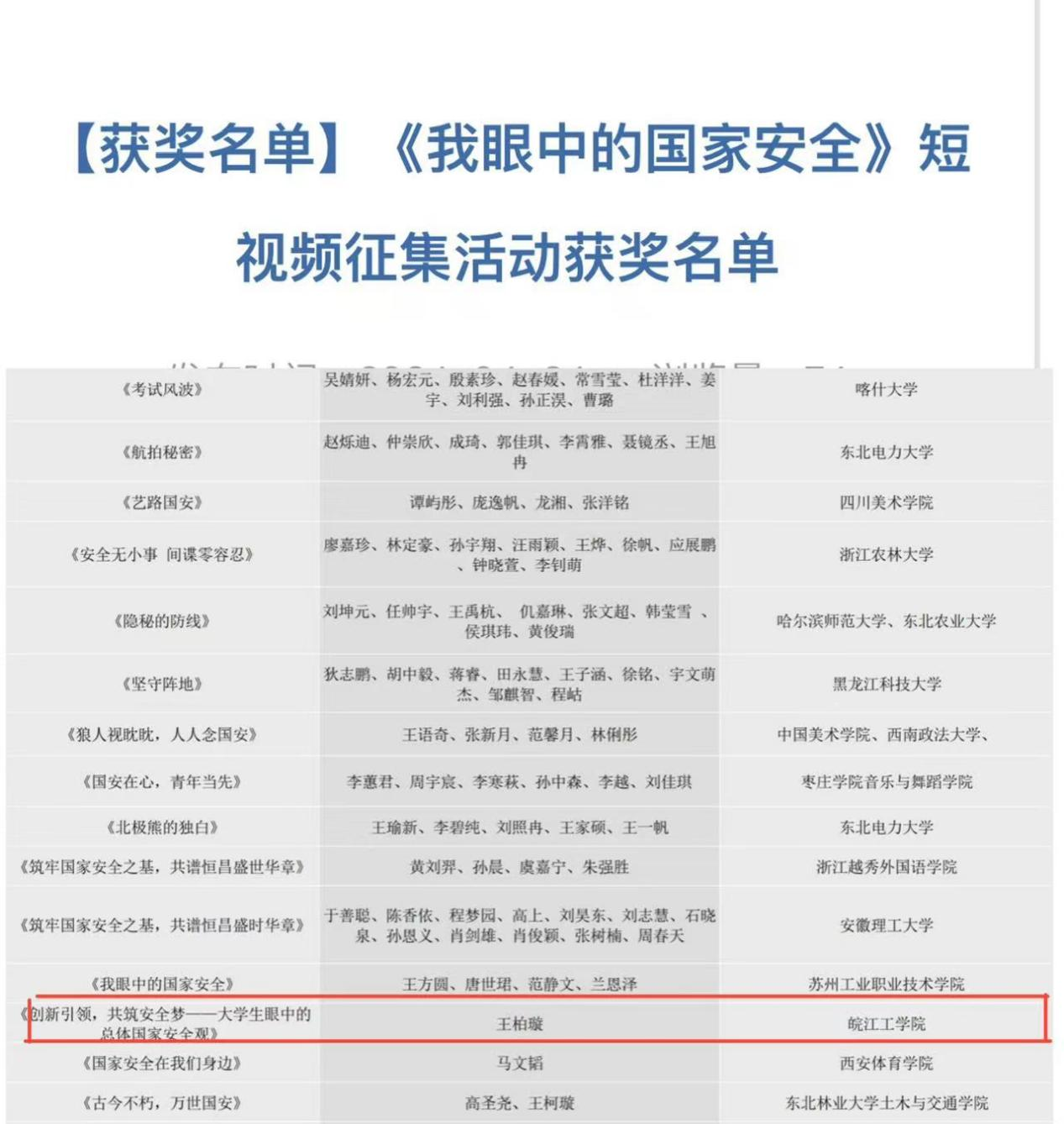 beat365官网作品在首届大学生《我眼中的国家安全》 短视频大赛中荣获优秀奖